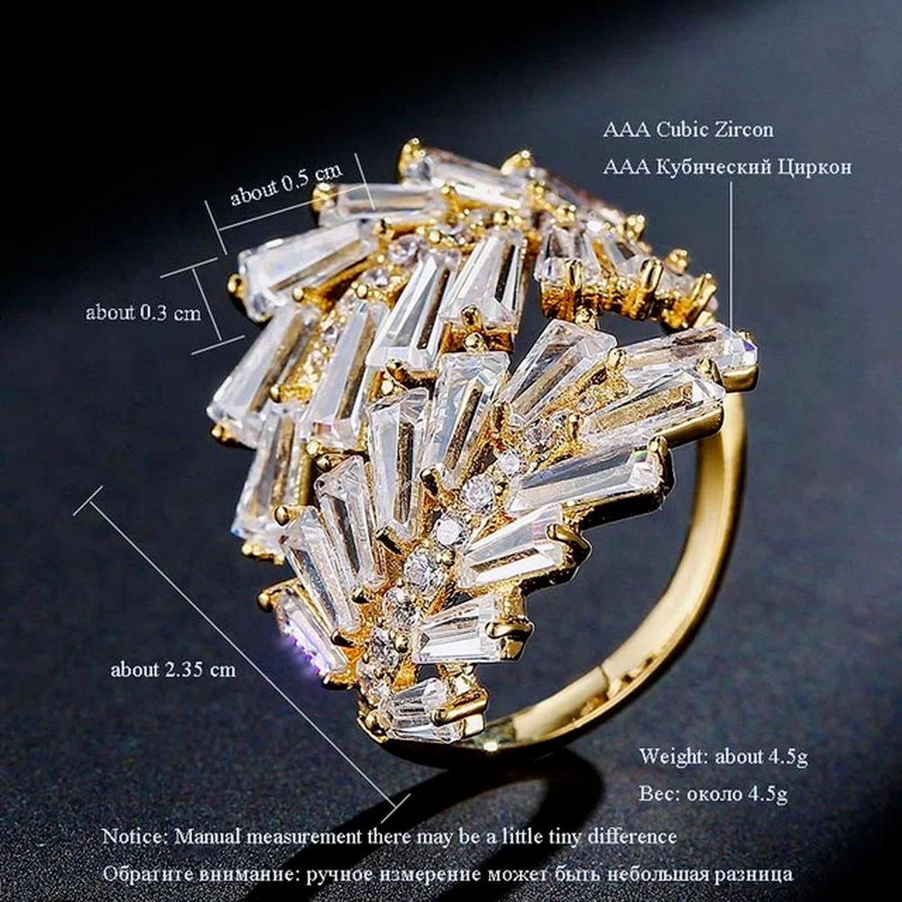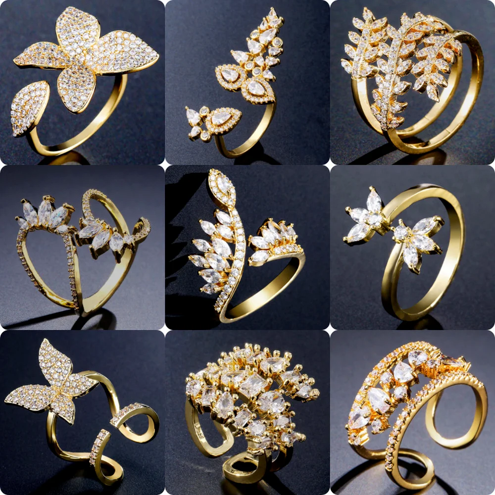 Новинка роскошные золотые кольца в виде бабочки и листьев для женщин простое Открытое кольцо с квадратным кубическим цирконием Женское Обручальное свадебное ювелирное изделие