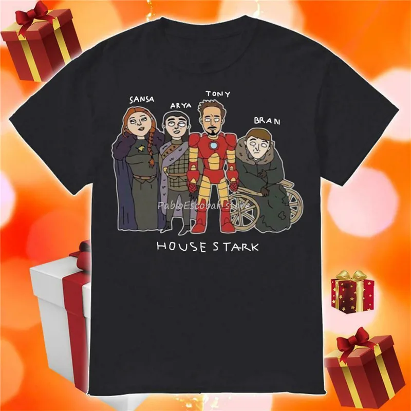 Мужские хлопковые футболки новые мужские больший размер футболку дом СТАРКОВ, изображением Арьи отруби Тони Старк комплект из черной кофты с длинным рукавом и S-6Xl Высокое качество футболку
