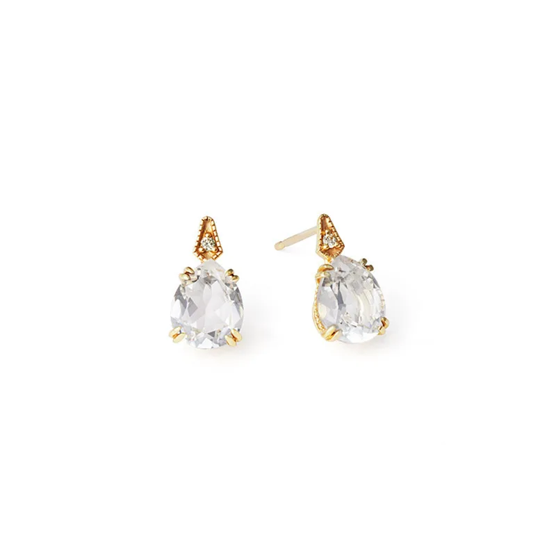 Ламон в винтажном стиле 925 серебряные серьги-гвоздики в виде капель с кристаллами в форме для женщин капли воды Натуральный прозрачный кристалл 14K светильник позолоченные ювелирные украшения LMEI155
