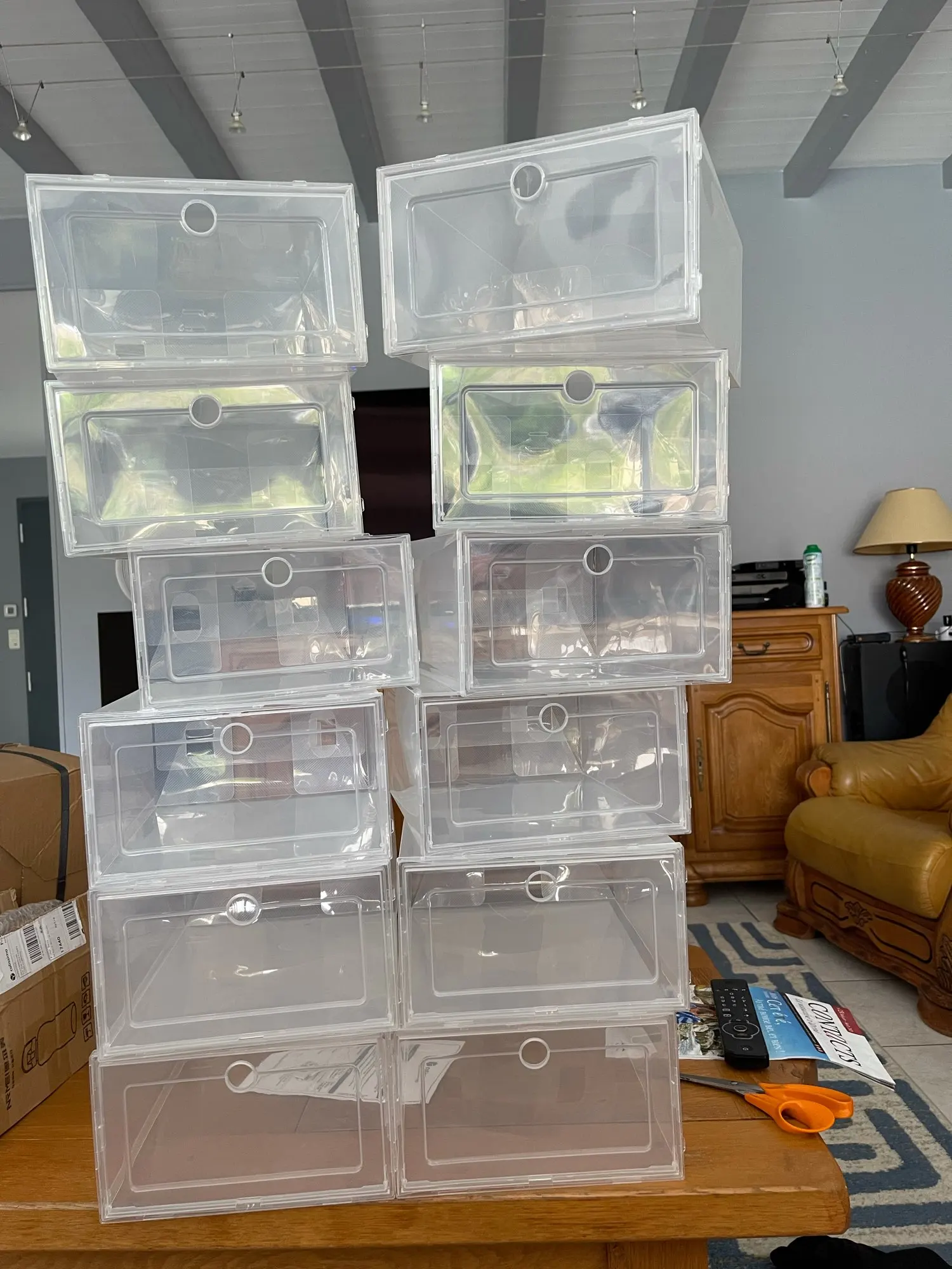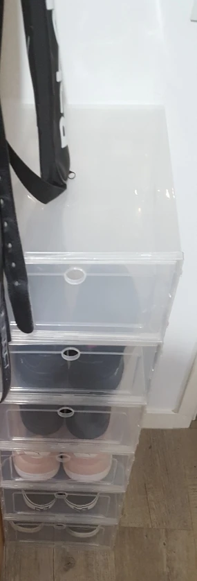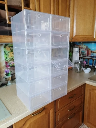 Товар приехал за неделю до постамата ближайшей Пятёрочки. Упакованы в пакеты, все конечно в разобранном виде. Собираются довольно не сложно, когда разобрался как это делается, инструкции по сборке нет. Боксы можно также скрепить между собой, что удобно при складировании вместе. В комплекте 6 шт. Высокие зимние ботинки или широкие подошвы могут не войти, обращайте внимание на габариты. В целом выглядят неплохо и довольно прочно держаться в собранном виде, хотя толщина пластика станок меньше 1 мм. Брал за 1200 руб/комплект из 6 шт.