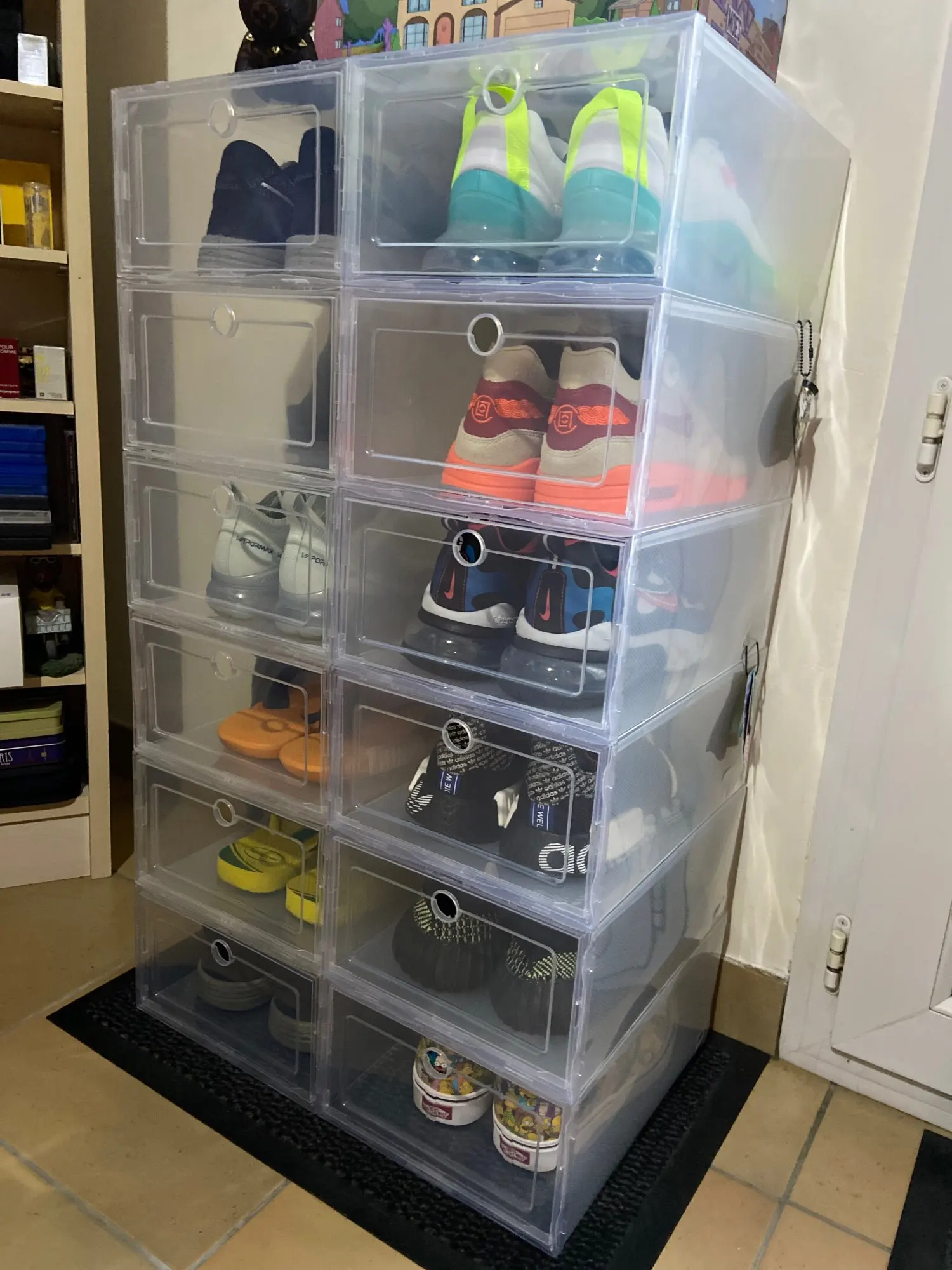Они отличные, хотя и не очень большие :) коробки подходят для my Air Max 90 и других низких кроссовок. Jordan 1 Highs и Mids van должны быть расположены сверху или лежать внутри. Достаточно прочный, для такого тонкого материала! Очень хорошо Сборка была немного медленной, но легко овладевать. Очень доволен этим. Быстрая доставка.
