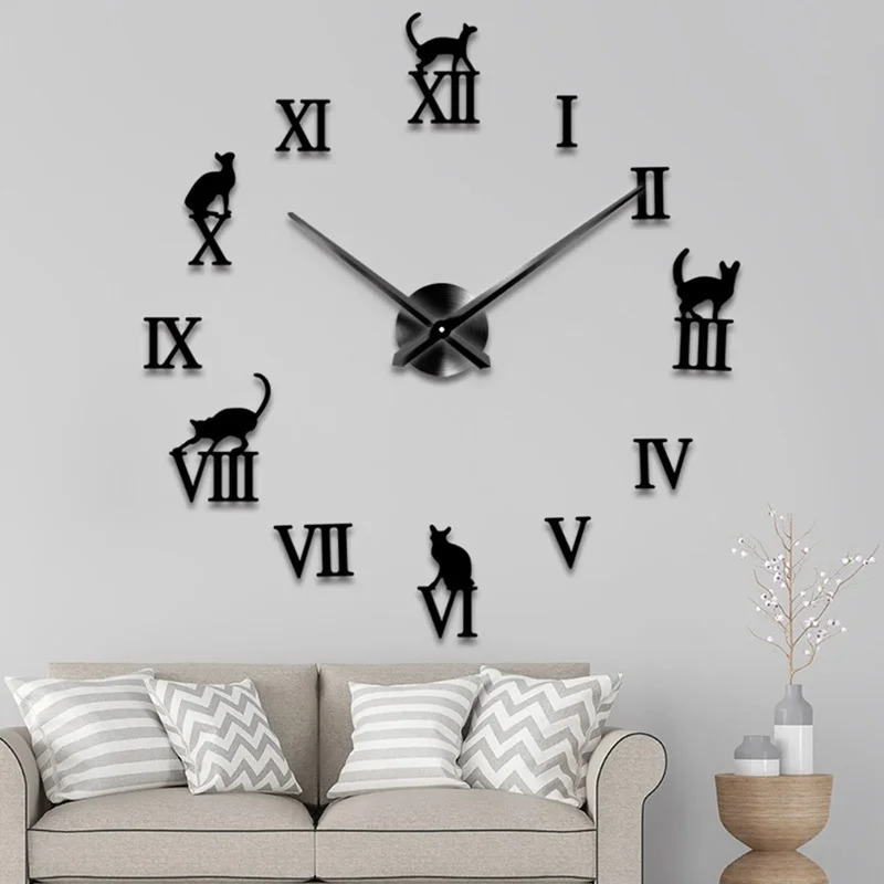 Большие настенные часы с кошкой, бесшумные 3D, сделай сам, кухонные...
