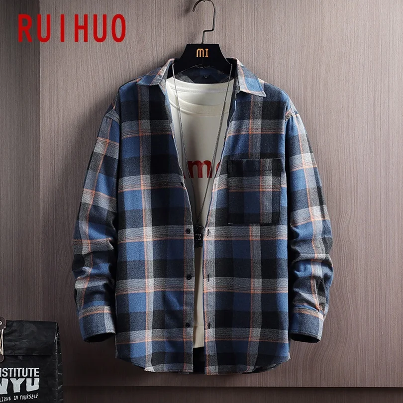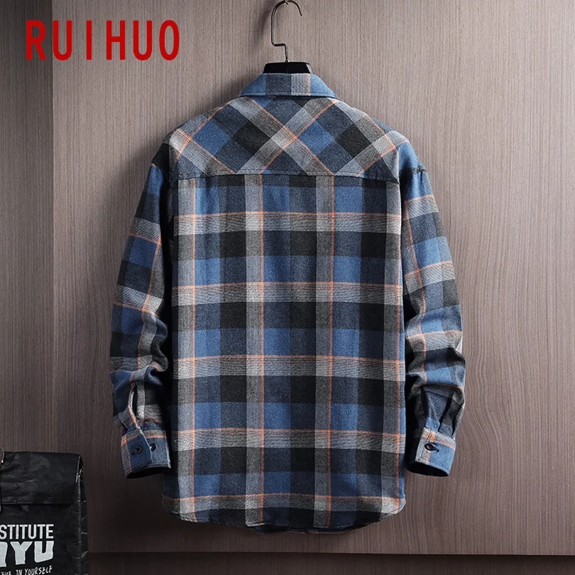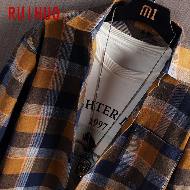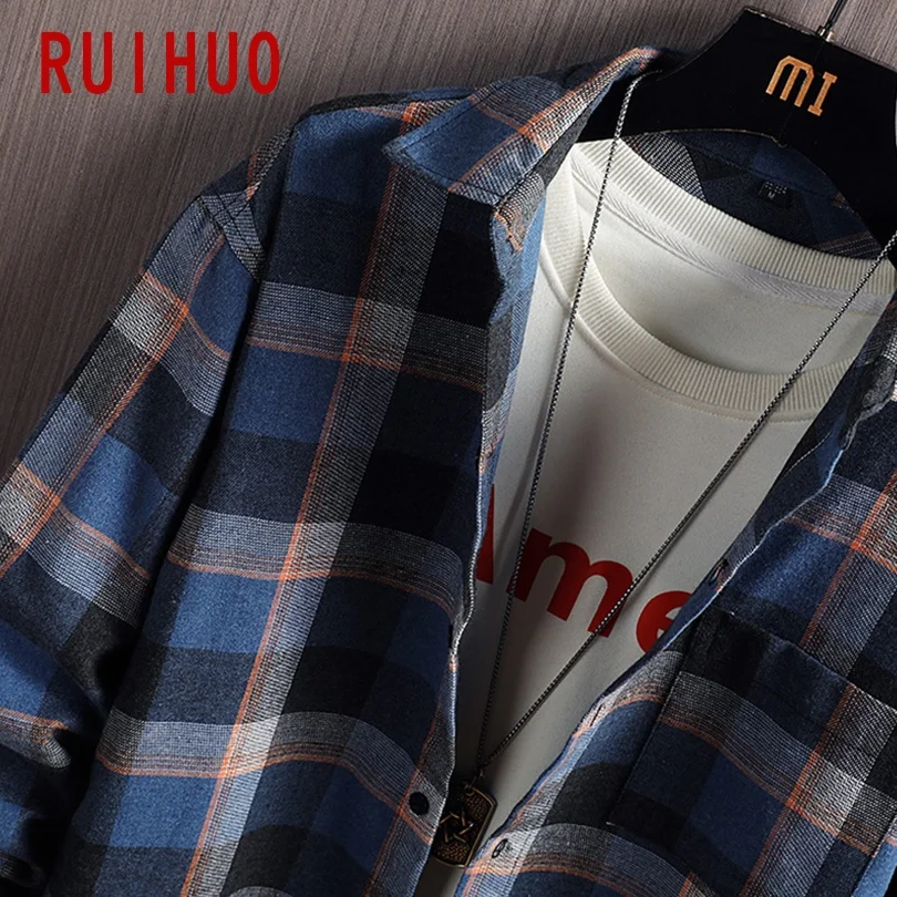 Рубашка RUIHUO мужская с пуговицами в клетку, модная повседневная приталенная, в Корейском стиле, 5XL, лето 2021