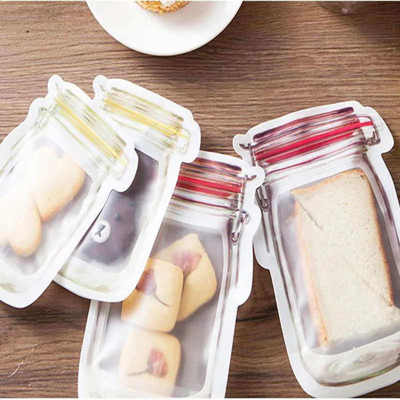 Прозрачный пакет для хранения, 1 шт., пластиковая многоразовая бутылка в форме мешка, самозакрывающаяся закрывающаяся сумка с застежкой-молнией, кухонные принадлежности для хранения