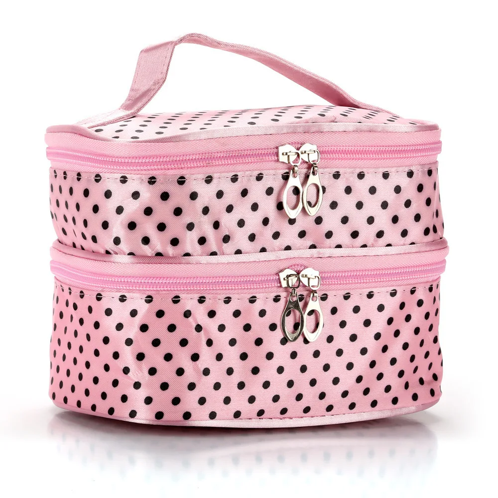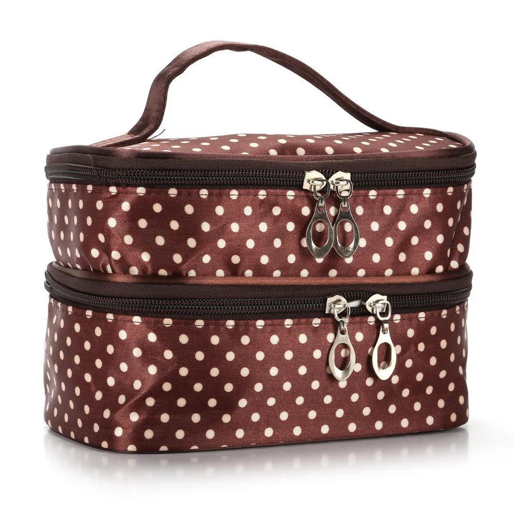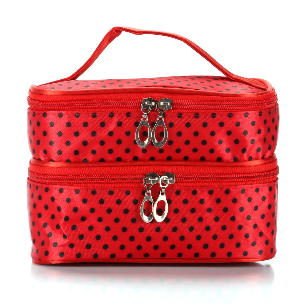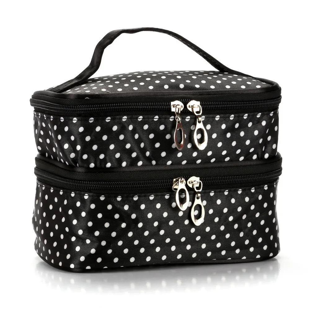 Двойной Слои Make Up Для женщин сумка Корейская версия со вставками в мелкий горошек большой Ёмкость Портативный Водонепроницаемый мешок для стирки 7 Цвета в наличии