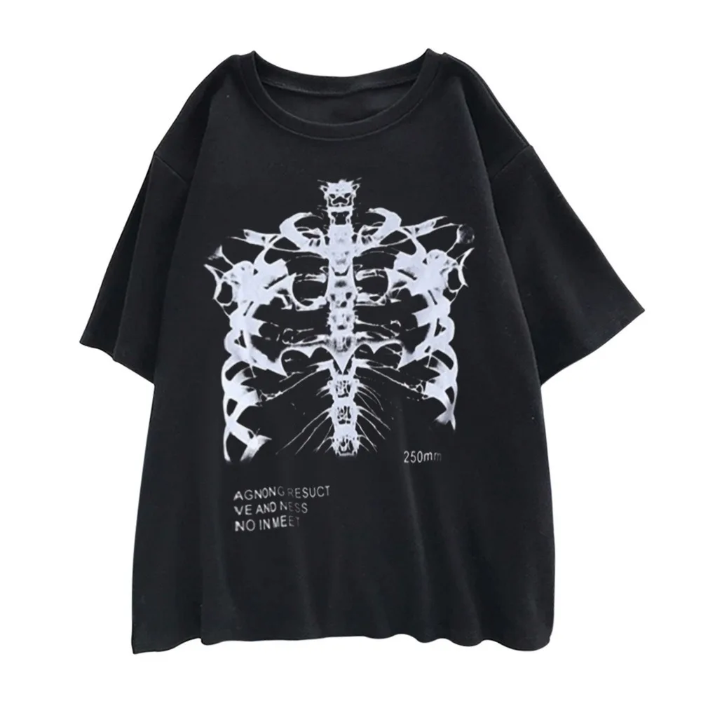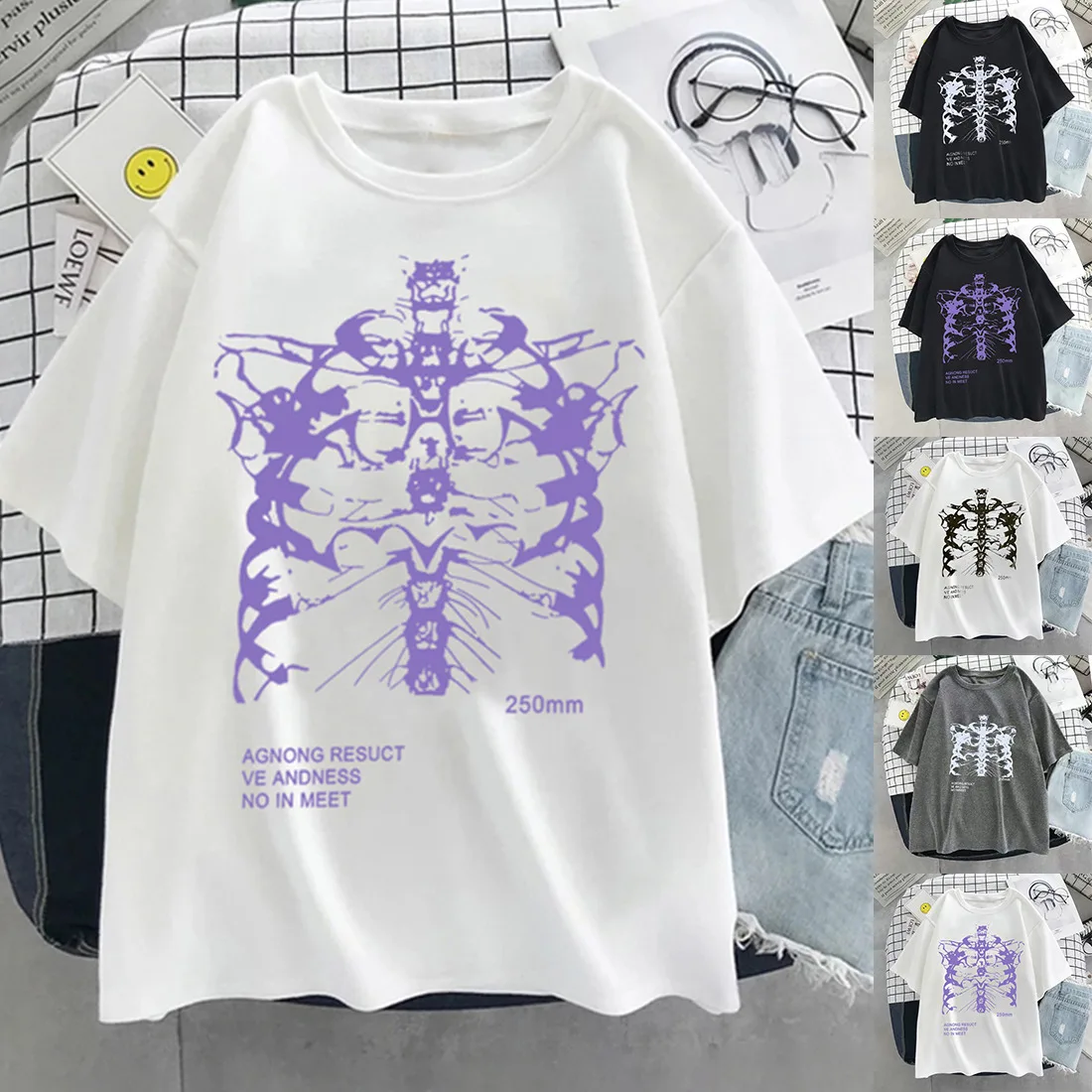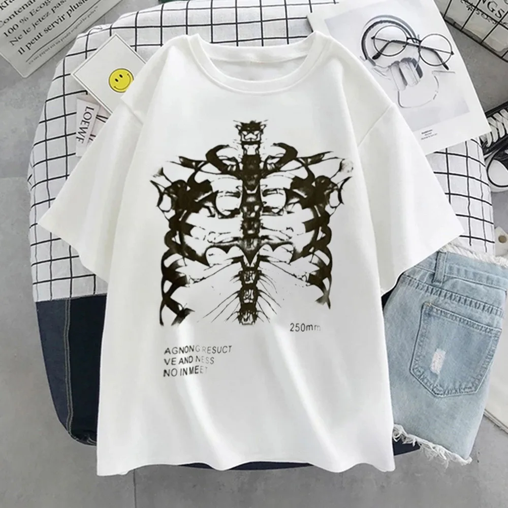 Женская футболка с коротким рукавом, забавная летняя футболка в стиле панк с принтом сердца и легких и костей, 2021