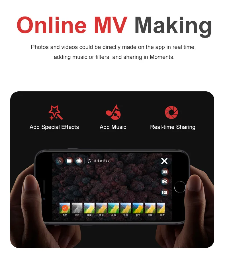 Функция наблюдения: камера самолета будет блокироваться на вашем мобильный телефон, при использовании этой функции самолет будет автоматически отслеживать ваше движение и запечатлевать ваше движение с помощью определенного воздушного обзора. Объектив камеры будет продолжать указывать на мобильный телефон и оставаться на постоянном расстоянии до мобильный телефон.