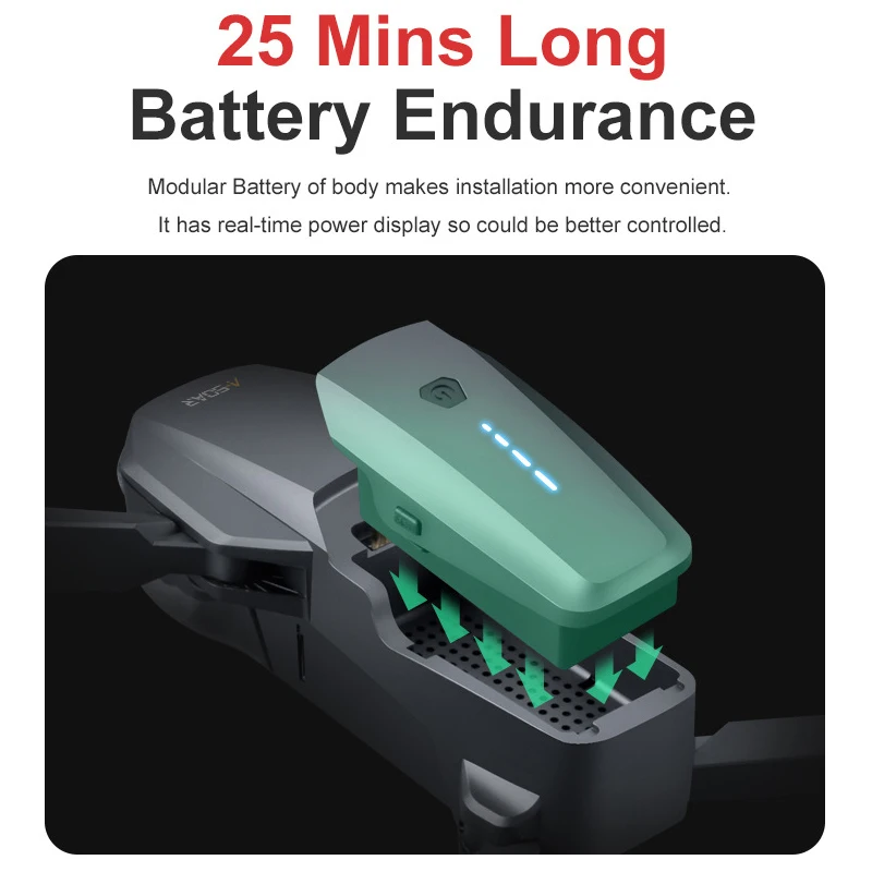 Нажмите, чтобы летать, позволяет дрону лететь к цели или летать в направлении, которое вы приклеили на экран. -Механическая стабилизация подвеса, снижающая дрожание и эффективно сохраняющая стабильность снимков.