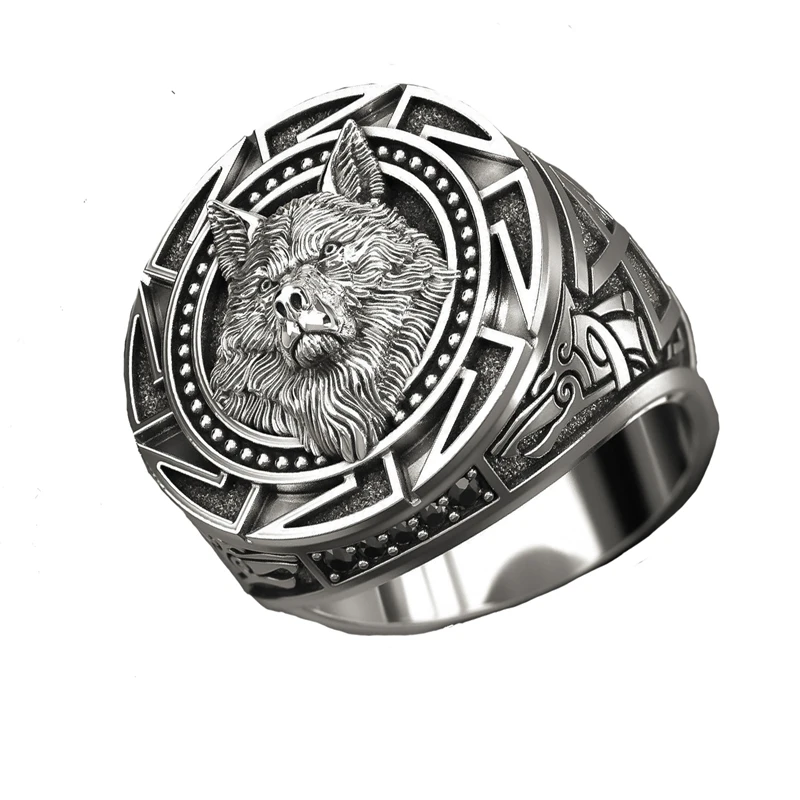 Signet мужское кольцо с уплотнением Винтажное кольцо волк Тотем тай...