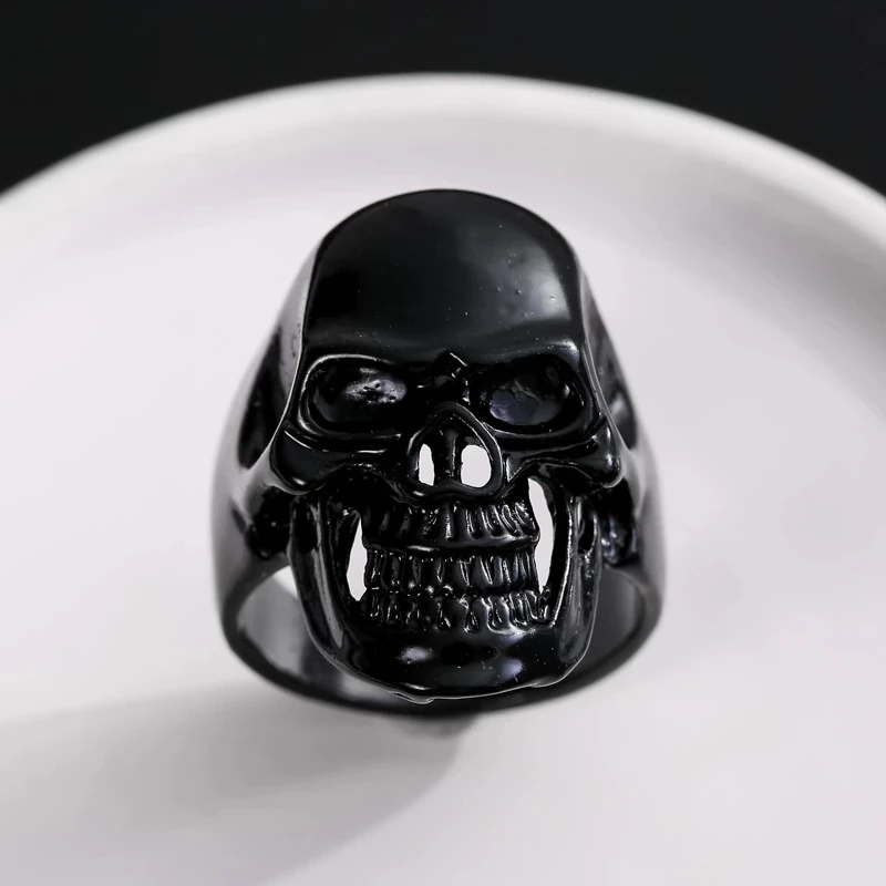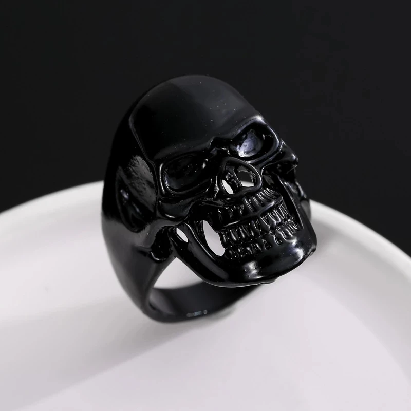 Кольца в стиле панк для мужчин, креативные ювелирные украшения в готическом стиле с черным черепом и головой смерти, с прорезями, на Хэллоуин