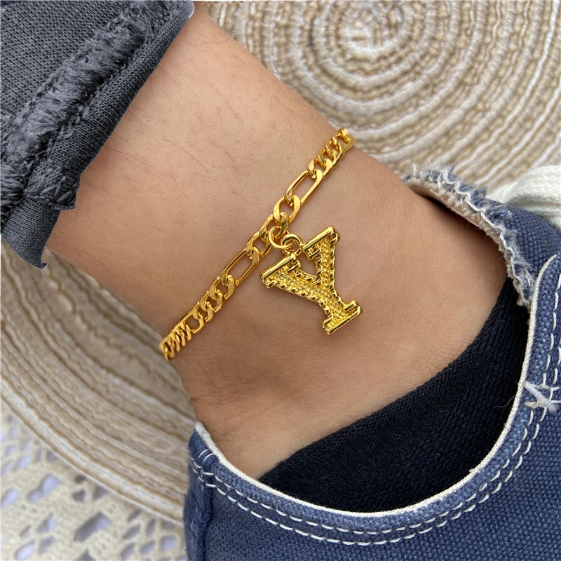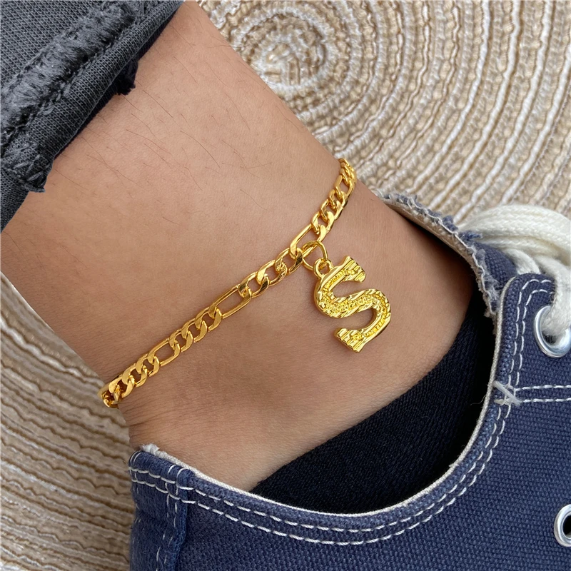 Браслеты-анклеты диаметром 17 км для женщин, оригинальные аксессуары для рукоделия, Золотая цепочка, алфавит, подвески, ювелирные изделия