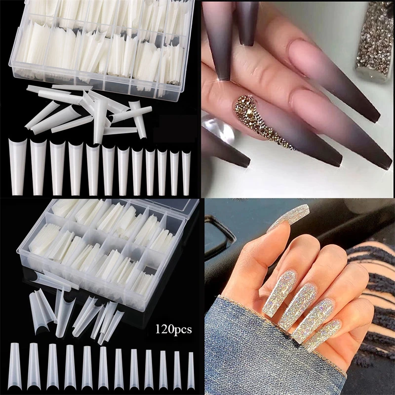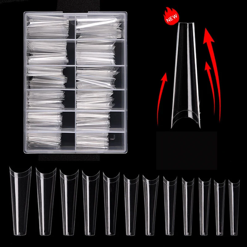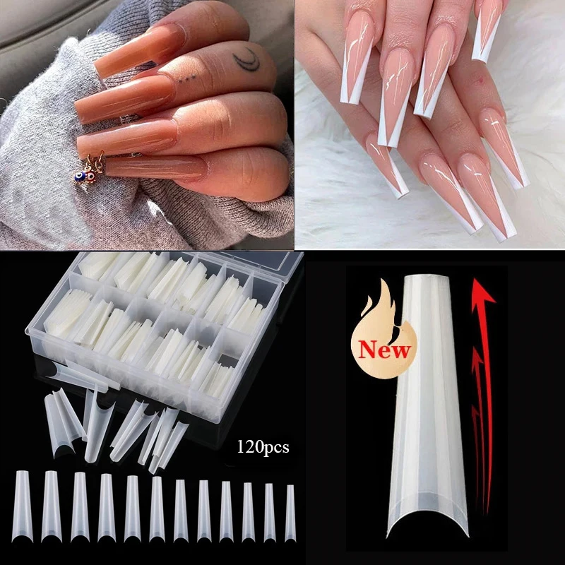 Удлиненные искусственные накладные ногти XXL, украшение для французских ногтей в виде гроба, полупокрытие, прозрачные натуральные ногти, накладные ногти для наращивания, дизайн ногтей