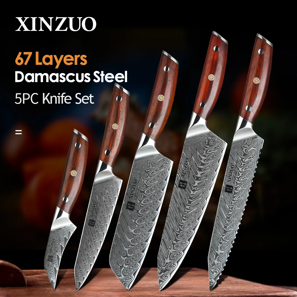 Набор кухонных ножей XINZUO, из дамасской стали, 67 слоев, с ручкой...