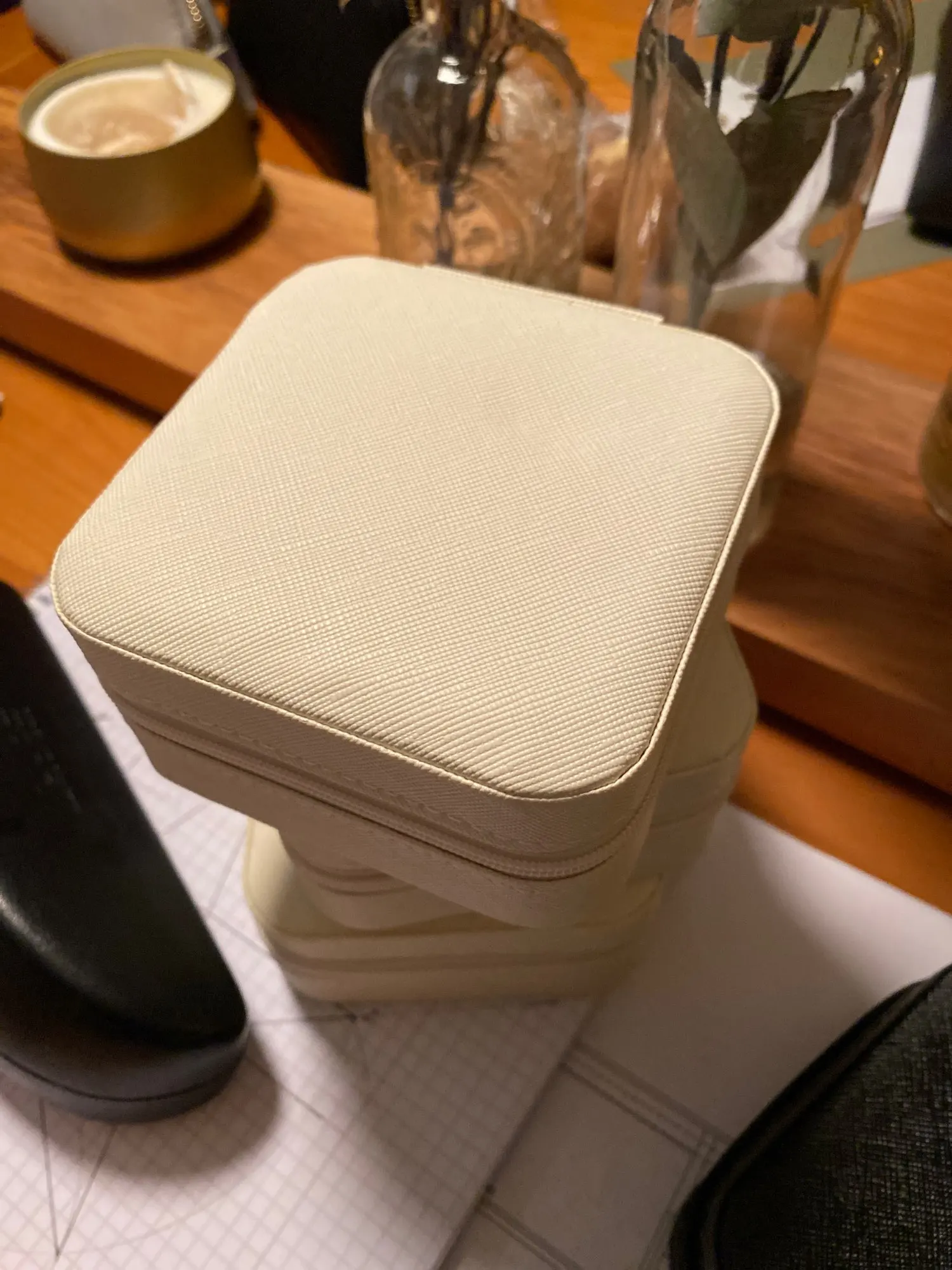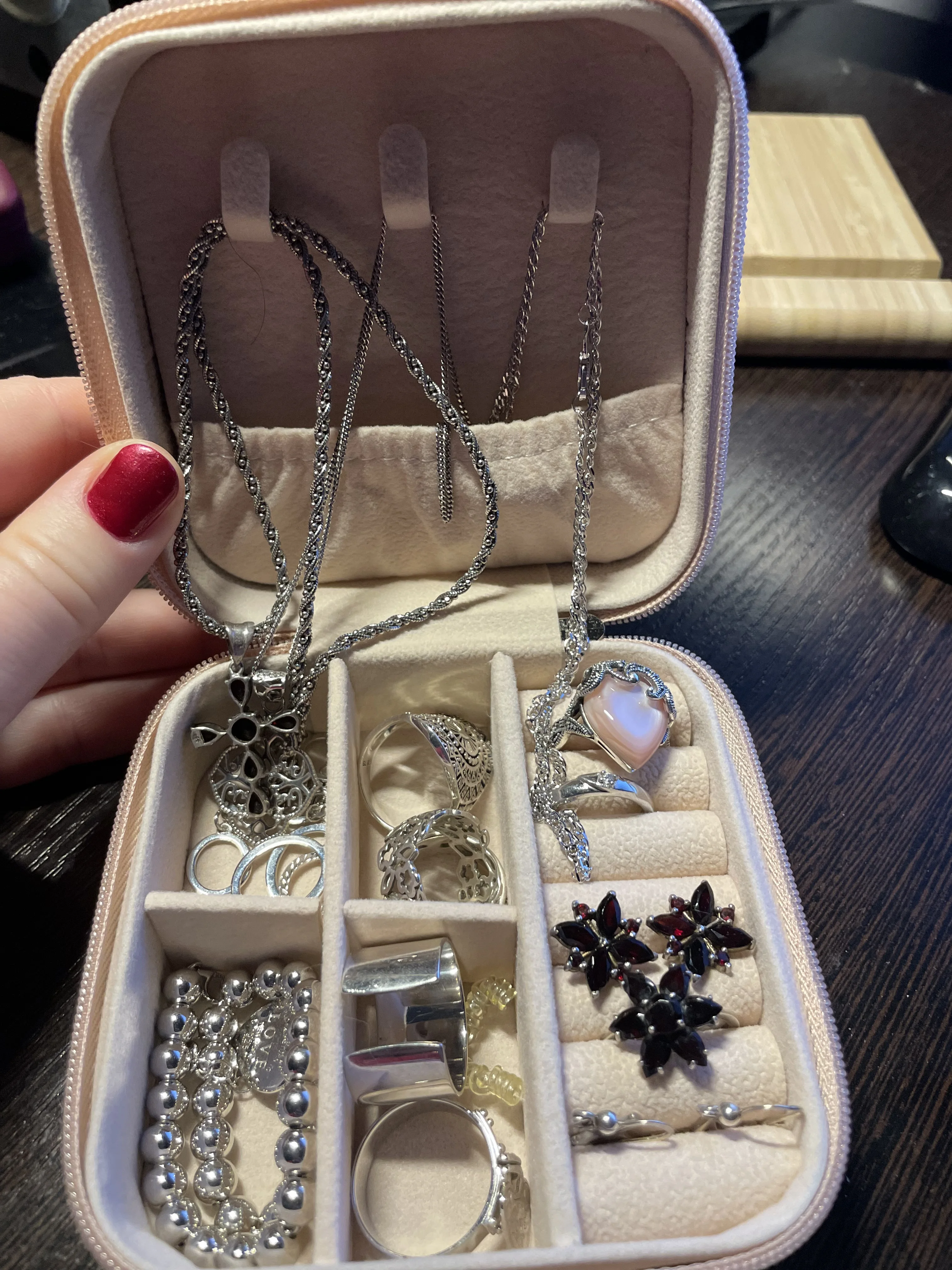Легкий и удобный, с несколькими отделениями, вы можете положить большие серьги, броши и другие предметы первой необходимости.