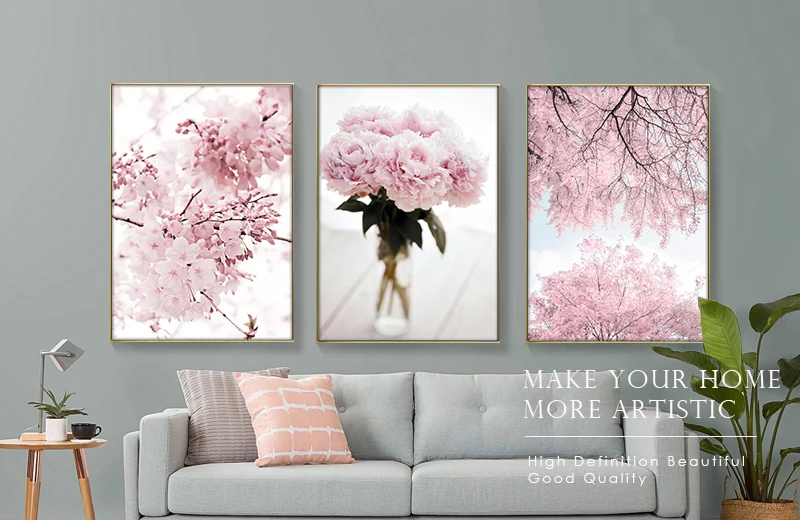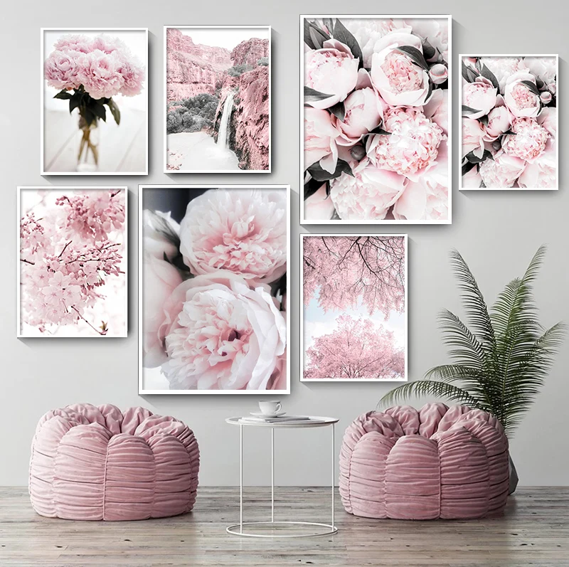 Постеры и принты в скандинавском стиле с изображением пиона, цветущей вишни, гвоздики, цветов, гор, настенная живопись на холсте, настенные картины для домашнего декора