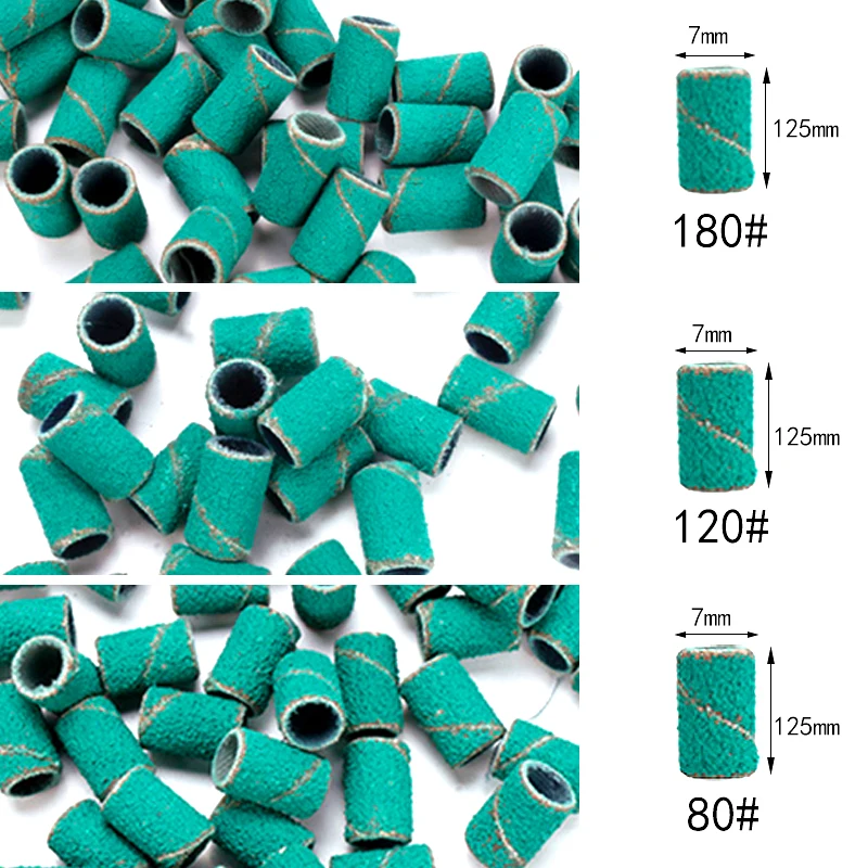 100 шт./упак. шлифовка бандажей кольцо детская одежда на рост 80, 120/180 Грит Наконечник Рукава сверлильный станок гель шлифовальный маникюрный салон, маникюрные полировочные инструменты
