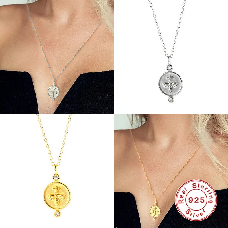 Автоклав 925 серебро минималистский колье для женщин, изготовлено вручную квадратные пчелы кулон цепь ожерелья и кулоны из нержавеющей стали ювелирные изделия с чокерами