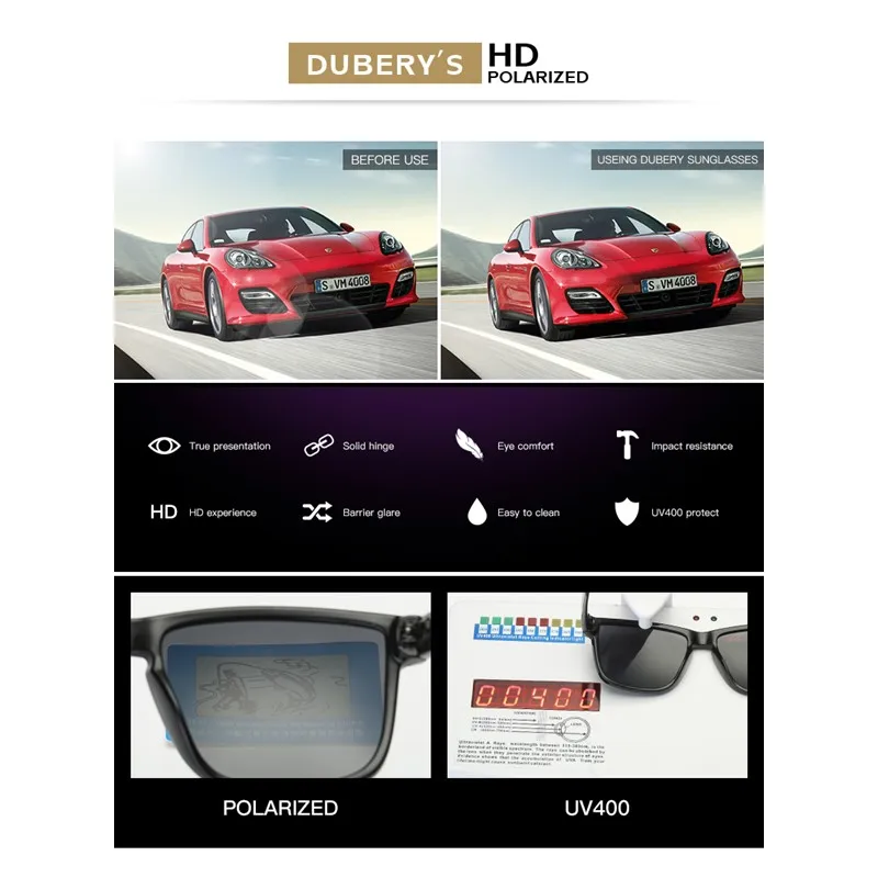 Бренд DUBERY квадратные поляризованные очки Для мужчин Для женщин Для мужчин рыбалка очки солнцезащитные очки Кемпинг Пеший Туризм вождения очки спортивные солнцезащитные очки 518