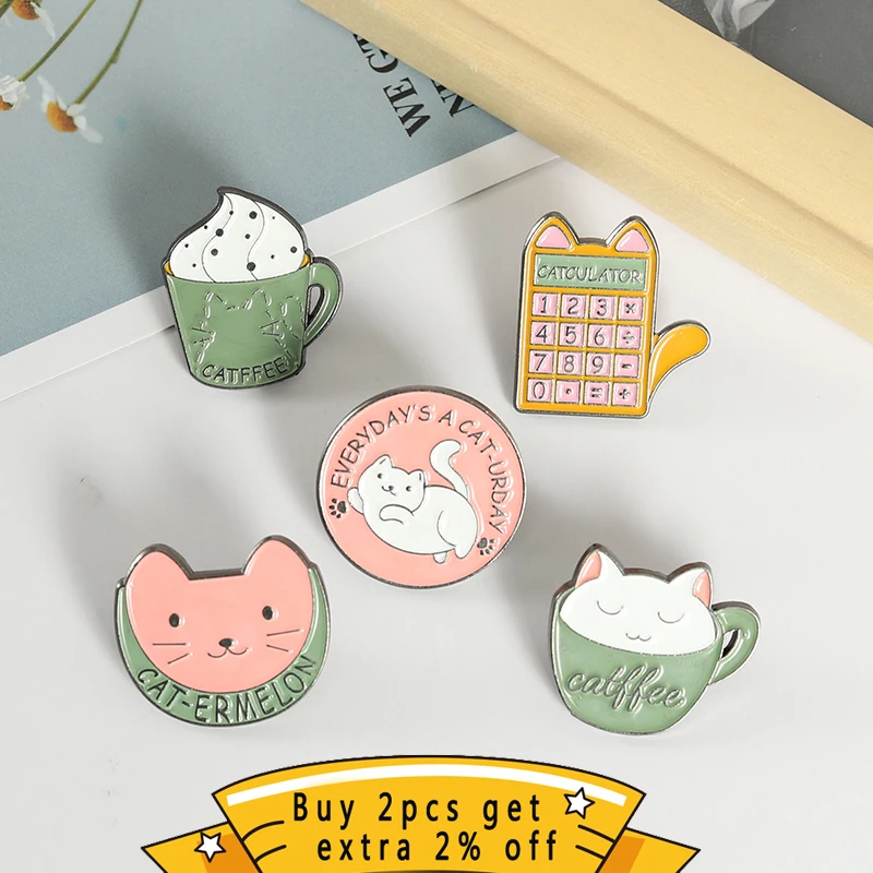 Мультяшная чашка Кот эмаль значки калькулятор мороженое Кофе броши-...