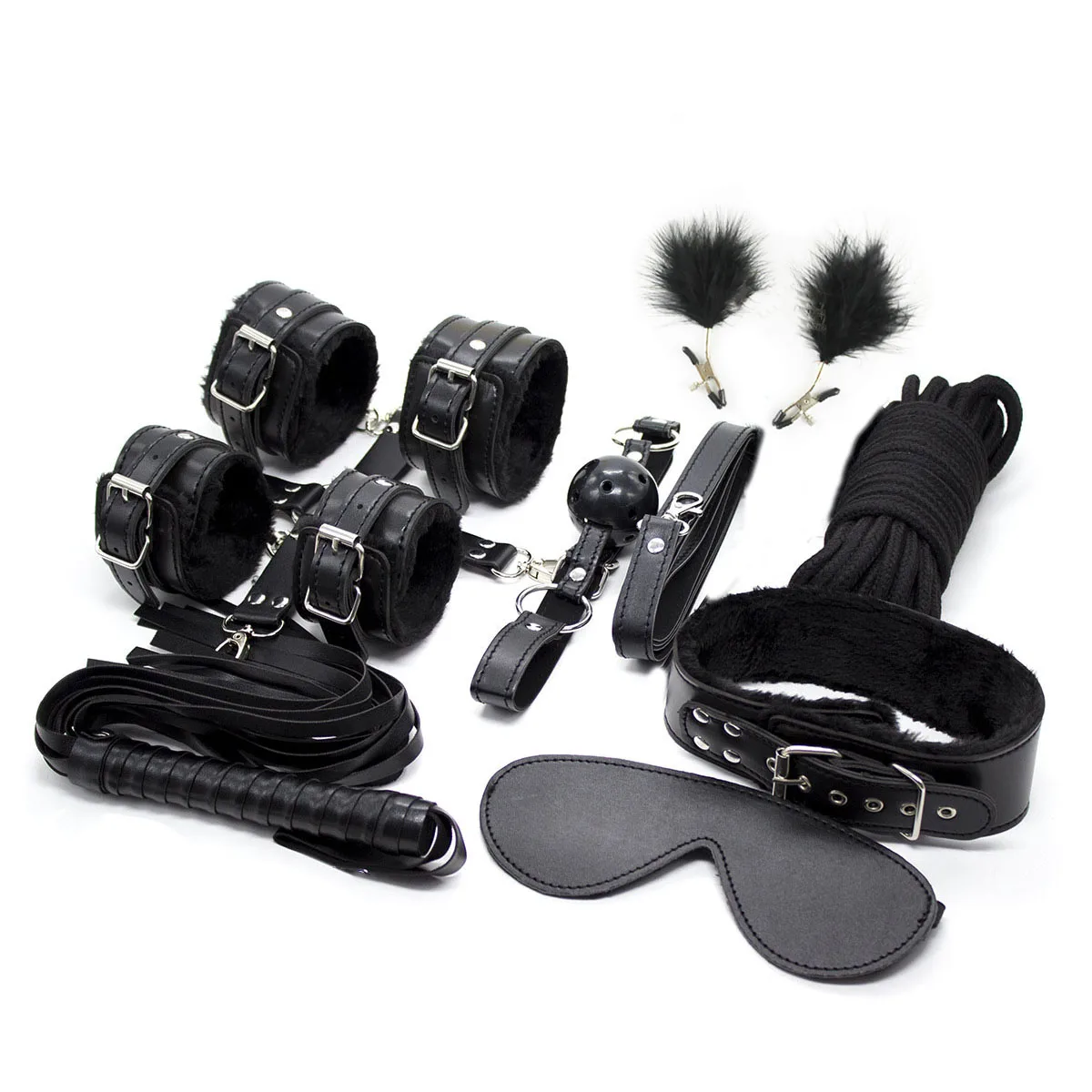Набор для связывания с наручниками и зажимами для сосков, для взрослых
