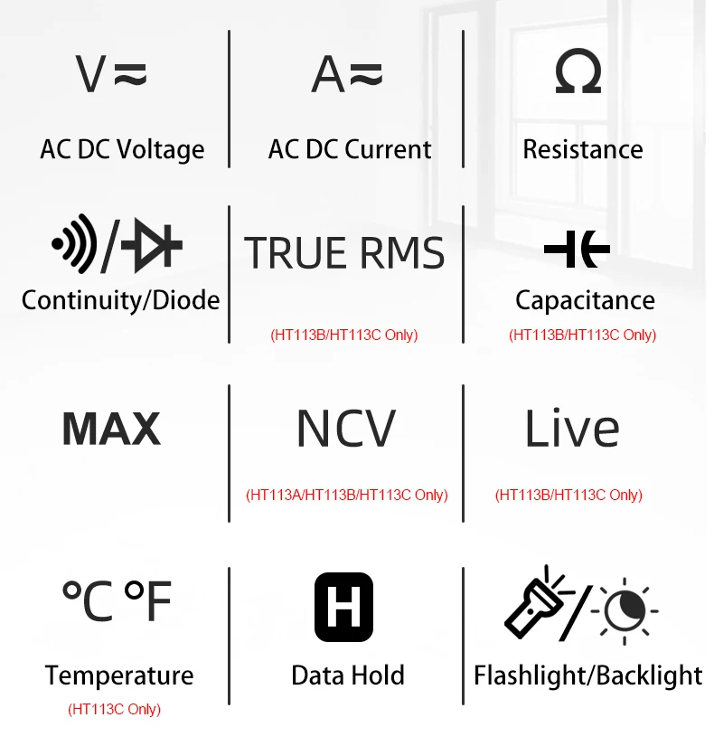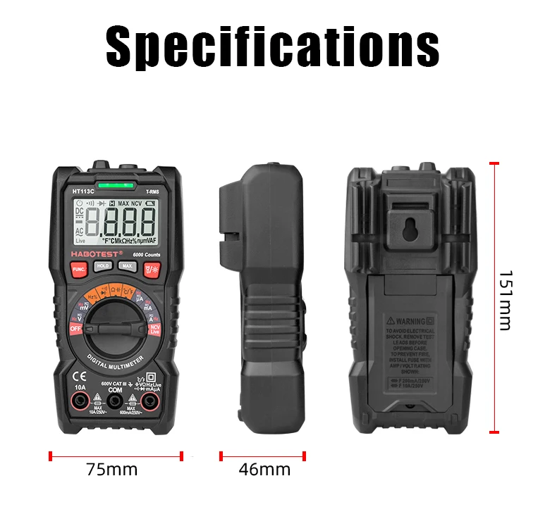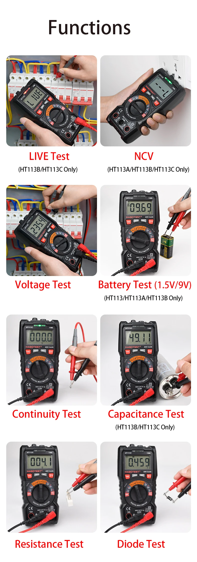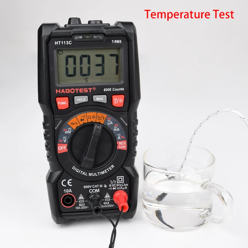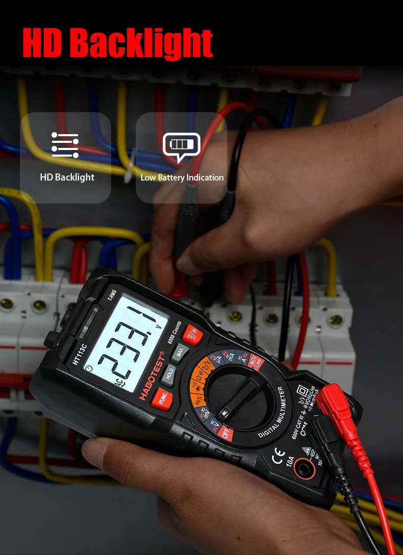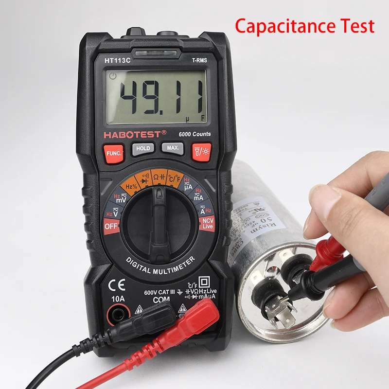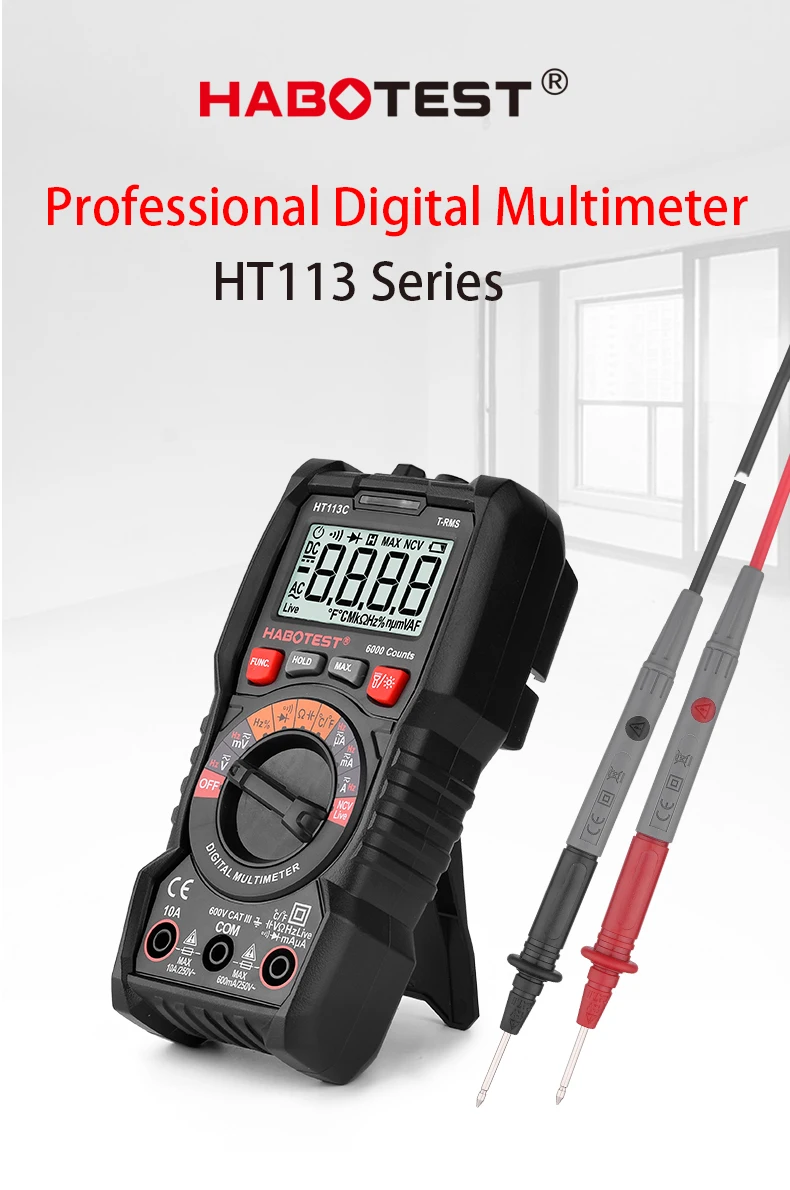 Цифровой мультиметр, профессиональный автомобильный тестер True RMS HABOTEST Ом, тестер емкости, температуры Гц, транзисторов постоянного и переменного тока HT113