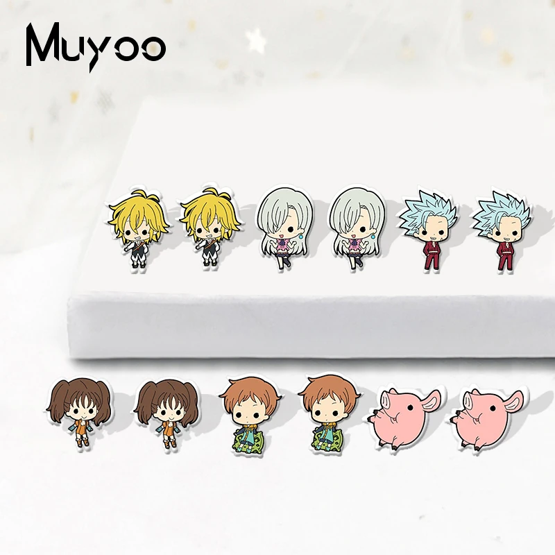 Серьги-гвоздики из акрила, с персонажами аниме Семь смертных грехов, для друзей, ручной работы, 2021