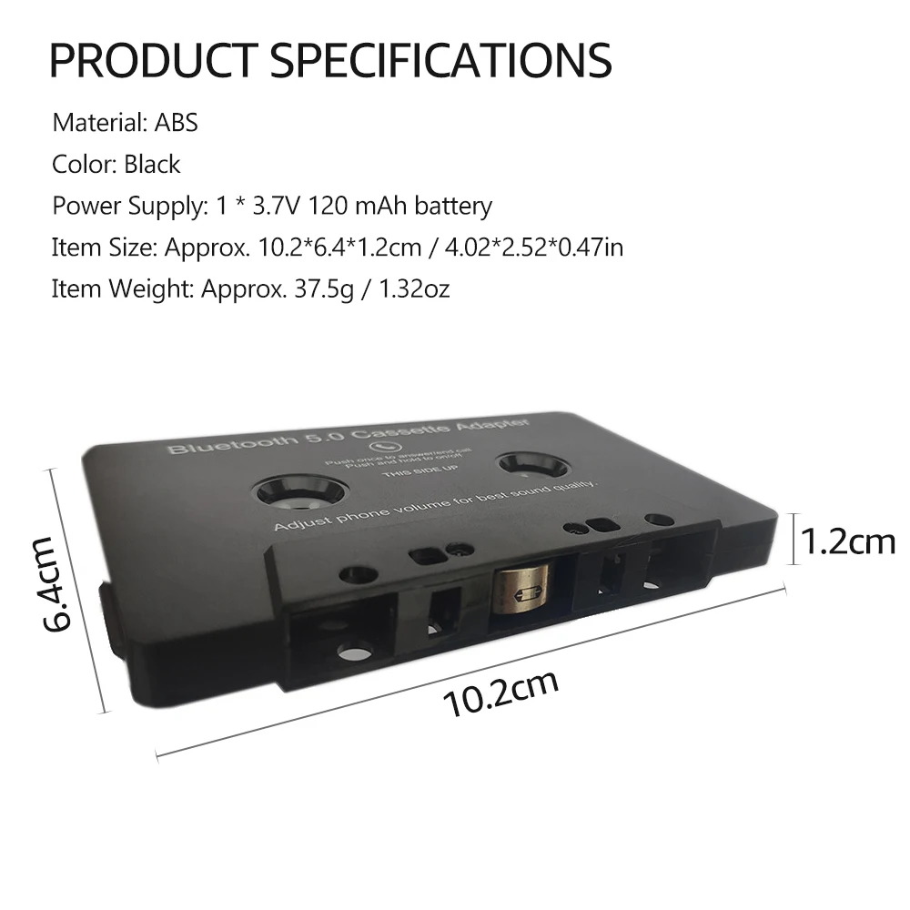 -Простота в эксплуатации, вам просто нужно вставить преобразователь в автомобильный Кассетный плеер После сопряжения BT, а затем нажмите, чтобы воспроизводить и наслаждаться музыкой.