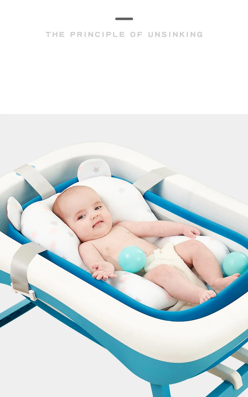 Подходит для новорожденных от 0 до 6 месяцев или маленьких детей. В нем используется структура кровати для ванной, чтобы эффективно предотвратить скольжение ребенка в воду. Благодаря мягкому материалу голова ребенка может не трескаться по краю кровати. Размер ребенка 3-12 месяцев не боится быть избитым. Ребенок будет подавлен во время купания, в то время как он может двигаться по своему желанию. Имеет ватный диск для укладки головы и длинную полоску.