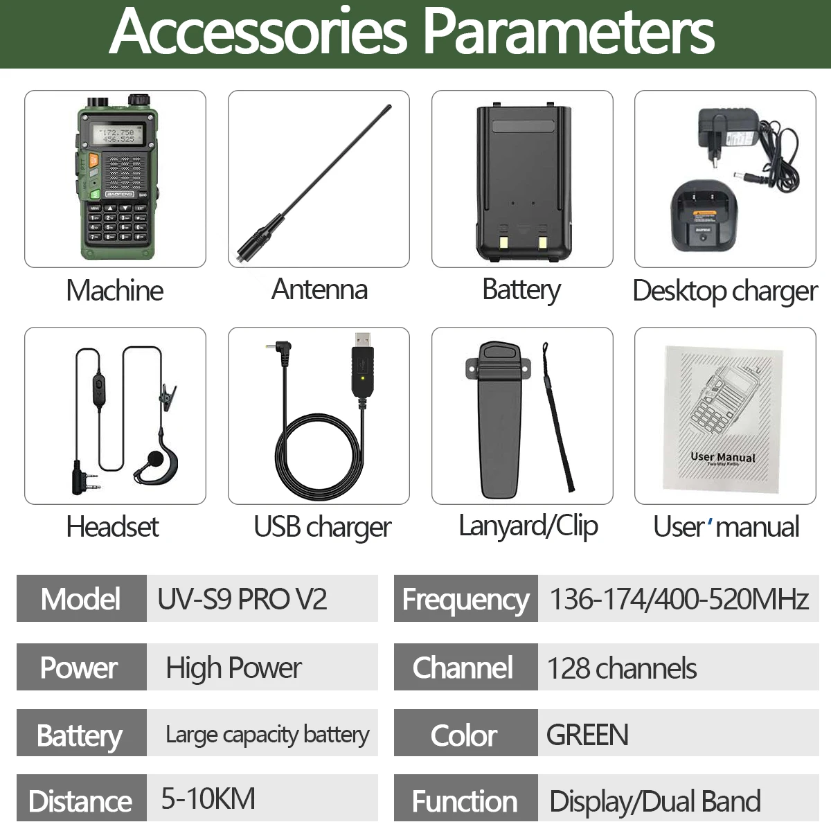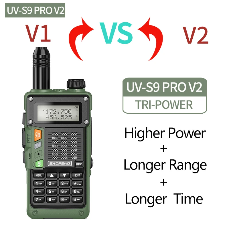 ★ BaoFeng UV-S9 Pro V2-это обновление UV-5R.H/M/L Power. Двухдиапазонный/двойной дисплей/двойной режим ожидания, автоматическая блокировка клавиатуры.