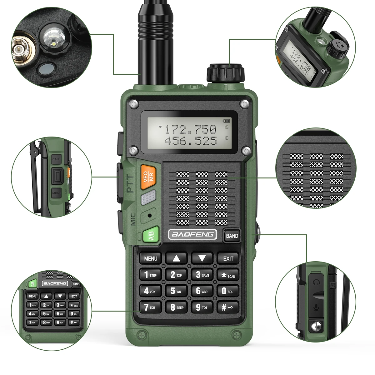 4. Литий-ионный аккумулятор большой емкости, оснащенный литий-ионным аккумулятором 2800 мАч. UV-S9 Plus-это легкий и удобный светильник. Просто нажмите кнопку PTT для разговора: даже в ночное время, переключая Встроенный светодиодный светильник-вспышка и встроенный VOX Функция громкой связи.