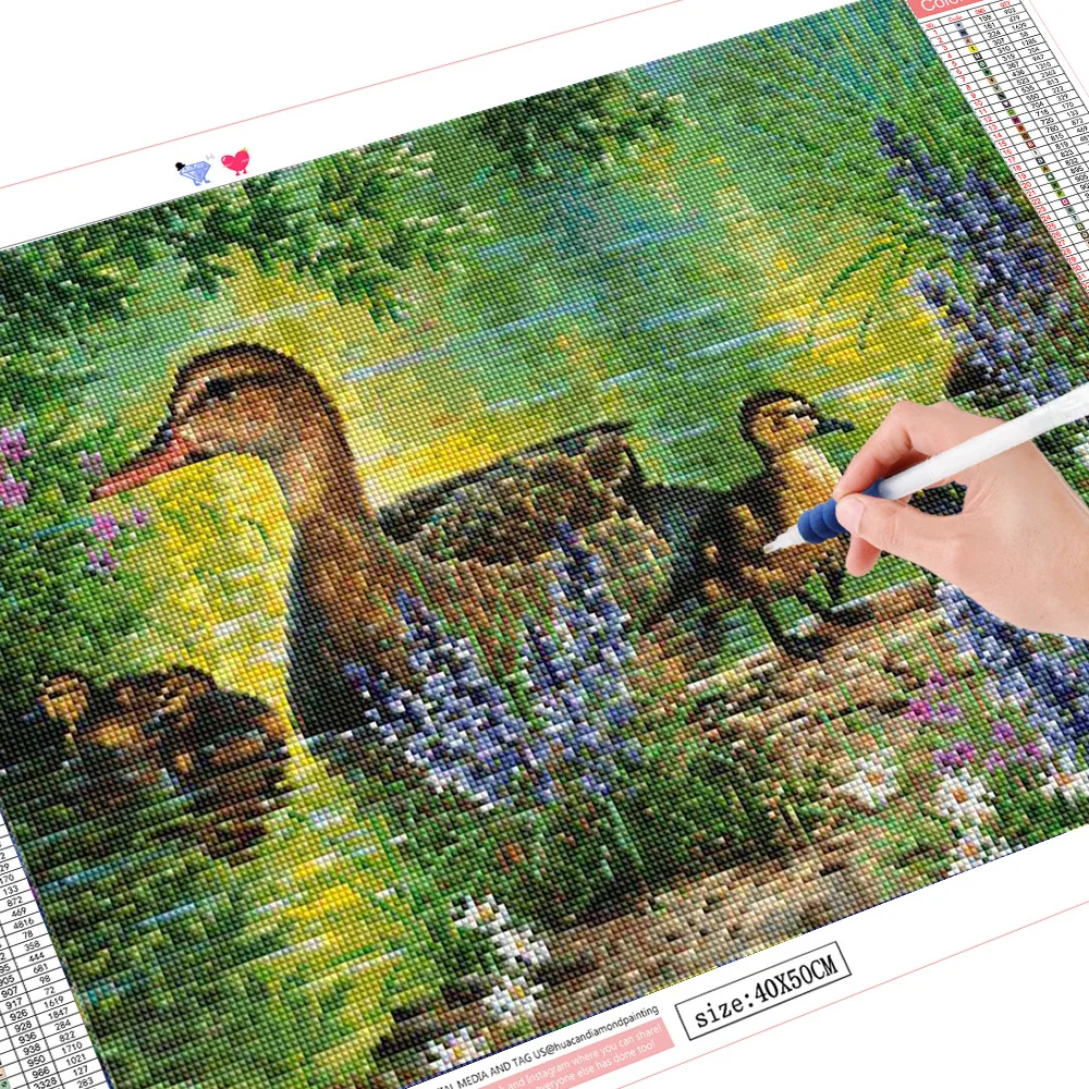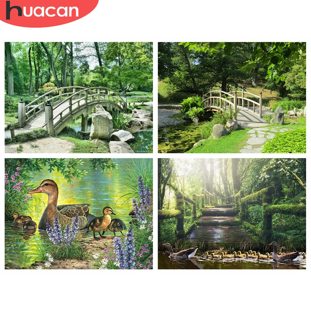 Алмазная 5D картина HUACAN сделай сам, мозаика с мостиком, лес, утка, ручная работа, подарок, полноразмерная вышивка стразами, пейзаж, настенное искусство