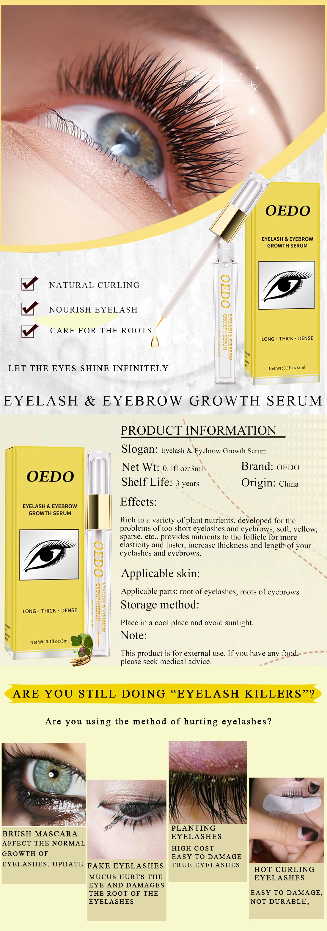 Содержит различные питательные вещества растений, формула разработана для проблем с слишком короткими ресницами и бровями, мягкими, желтыми, редкими и т. д., обеспечивает питательные вещества для окружающей среды фолликула, восстанавливает и питает ресницы и брови, придает ресницы и брови эластичность и блеск, а также делает ресницы и брови более густыми.