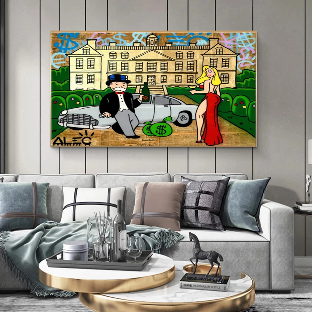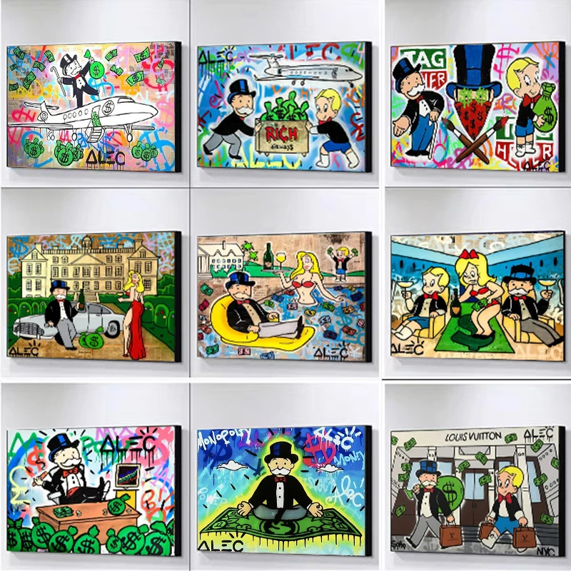 Alec граффити Монополия миллионер деньги улица Искусство Печать на холсте Живопись настенное искусство картины для гостиной Декор приставка