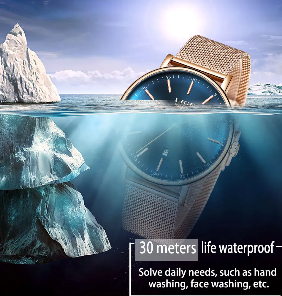 Часы наручные LIGE женские кварцевые, брендовые Роскошные водонепро...