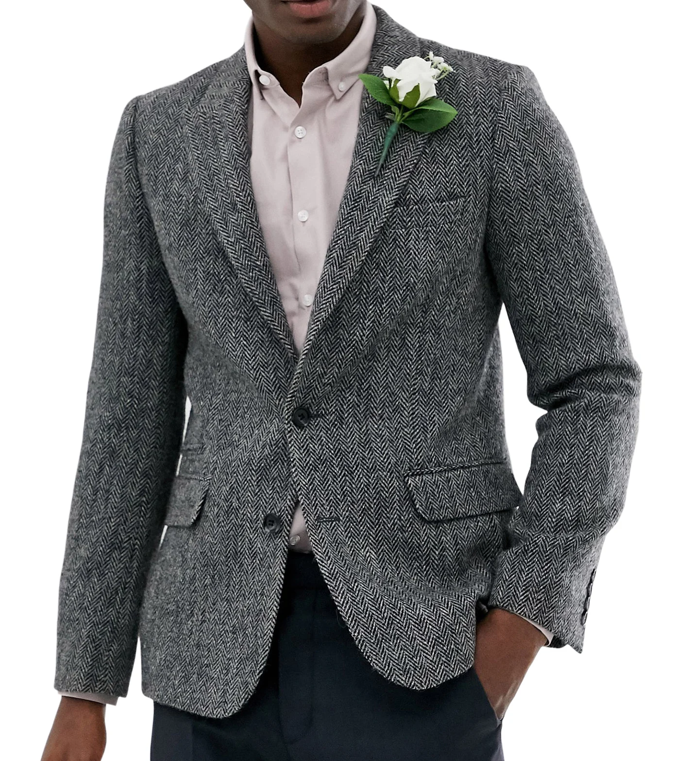 Для мужчин пиджак твид деловой с узором елочка с лацканами с тупым углом шерсть смокинг Блейзер Slim Fit Зимнее Пальто Свадебные, для жениха (только куртка)