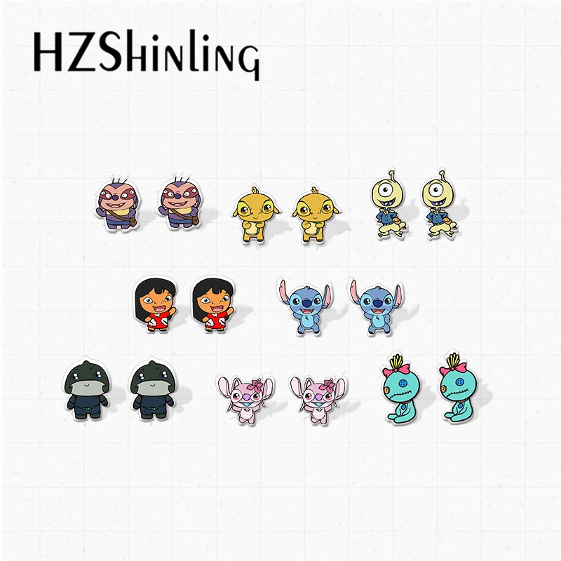 Новое поступление Kawaii из мультфильма Лило Стич Ангел куклы персонажей аниме ручной работы милые эпоксидной смолы акриловые серьги-гвоздики с эпоксидной смолой