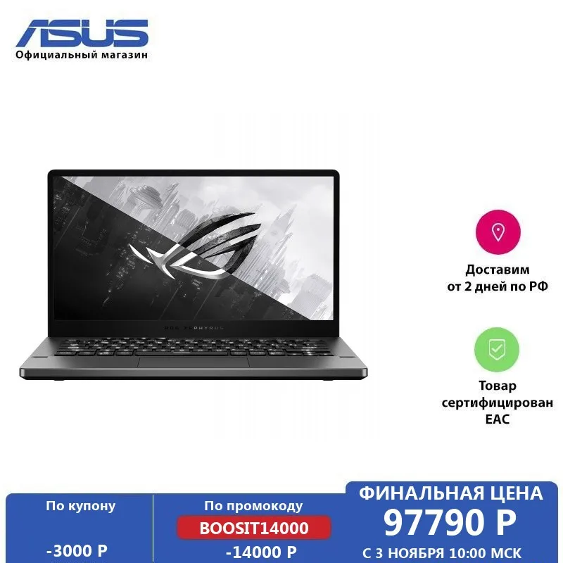 Ноутбук ASUS ROG Zephyrus G14 GA401QE-HZ085T 14.0' FHDRyzen 7 5800HS8Gb 512Gb SSDRTX 3050Ti для ноутбуков 4Gb