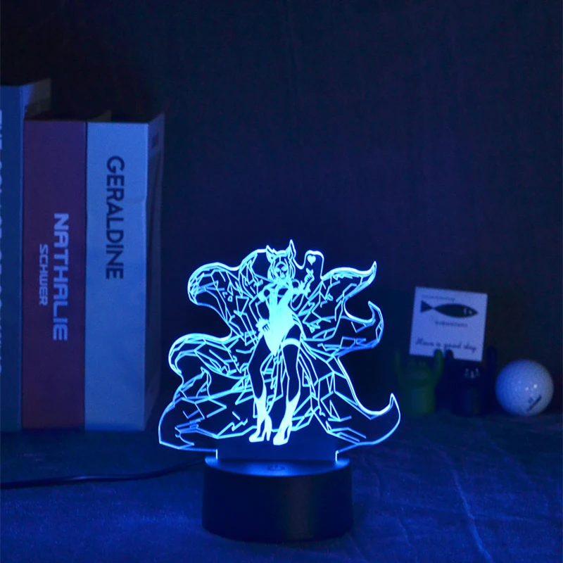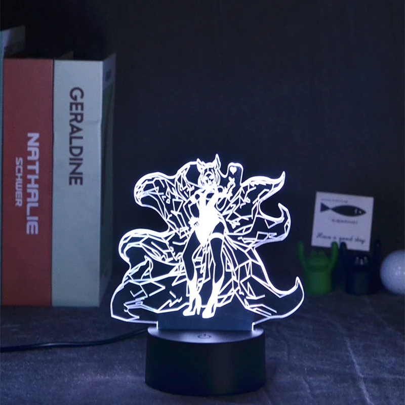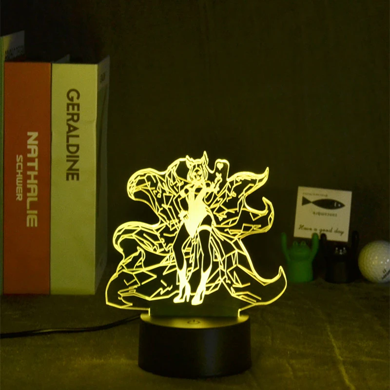СВЕТОДИОДНЫЙ 3D ночник League of Legends, светодиодный Светодиодный светильник с изображением лисы и Акри, цвет, меняющийся в помещении, детская кровать, прикроватные светильники