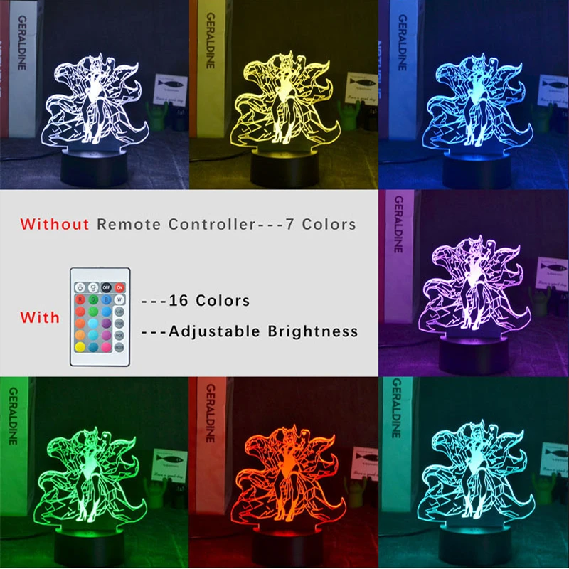 3D светодиодный Ночные огни League of Legends на рабочий стол с девятью Тай светодиодный лиса Ahri светодиодный светильник Цвет Крытый изменение детская кровать прикроватные настольные лампы