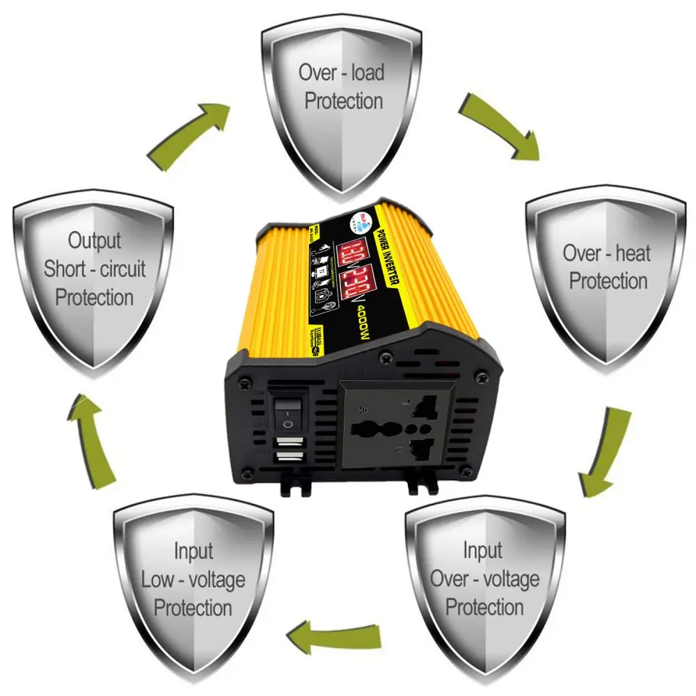 Инвертор синусоидальной волны 4000 Вт 2 USB DC 12 В в AC 220110 В, ...
