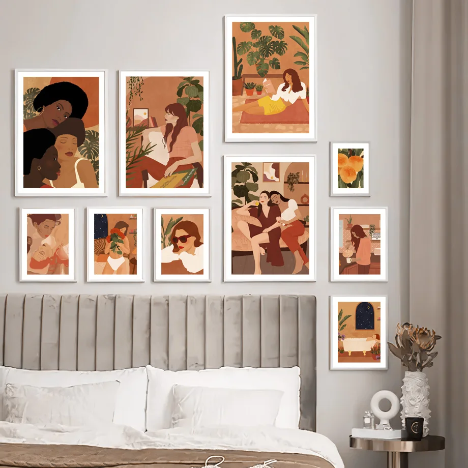 Спокойный Бохо женщины чтения ботанический скандинавский плакат гей лесбиянок стены искусства печать холст живопись Декор картинки для гостиной