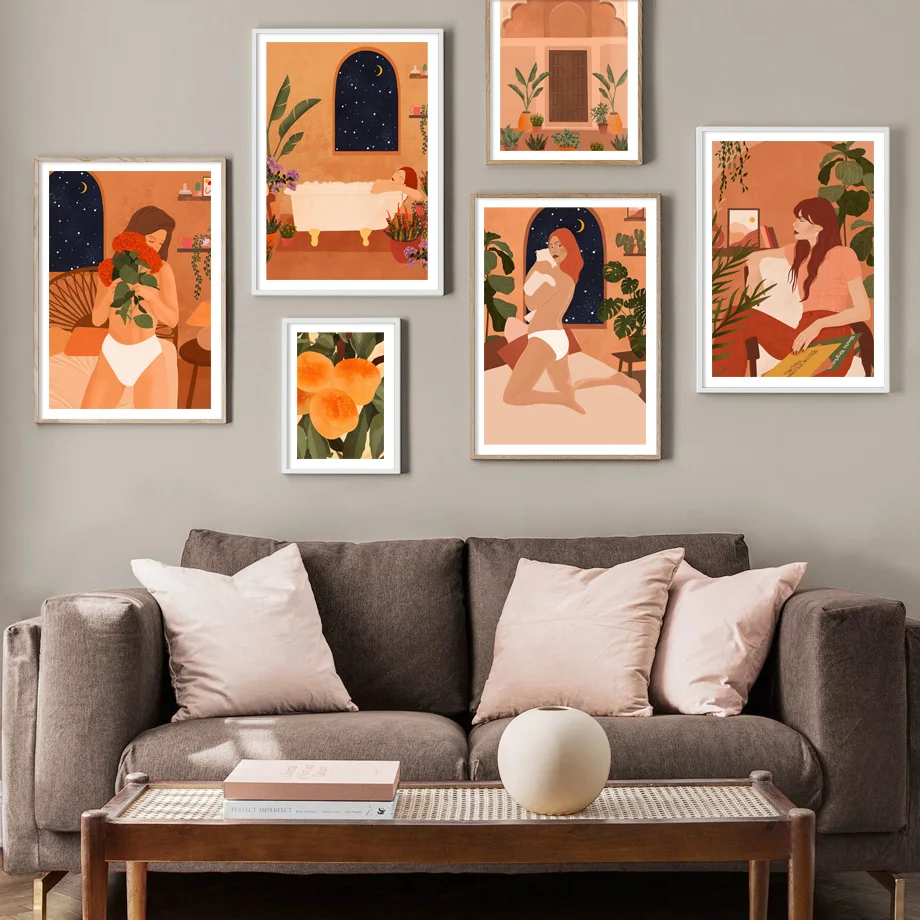 Абстрактная девушка оранжевая фотография скандинавские плакаты и ил...