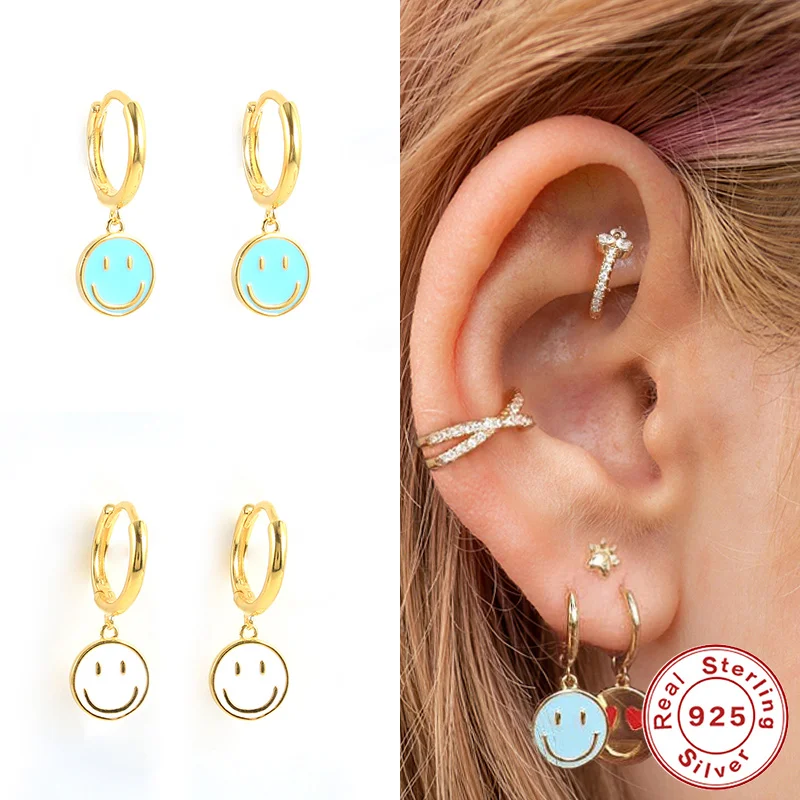 Aide серьги-кольца, покрытые эмалью для женщин неоновый круглой формы в форме сердца Pin смайлик Ювелирные серьги 925 стерлингового серебра красочные серьги Huggie
