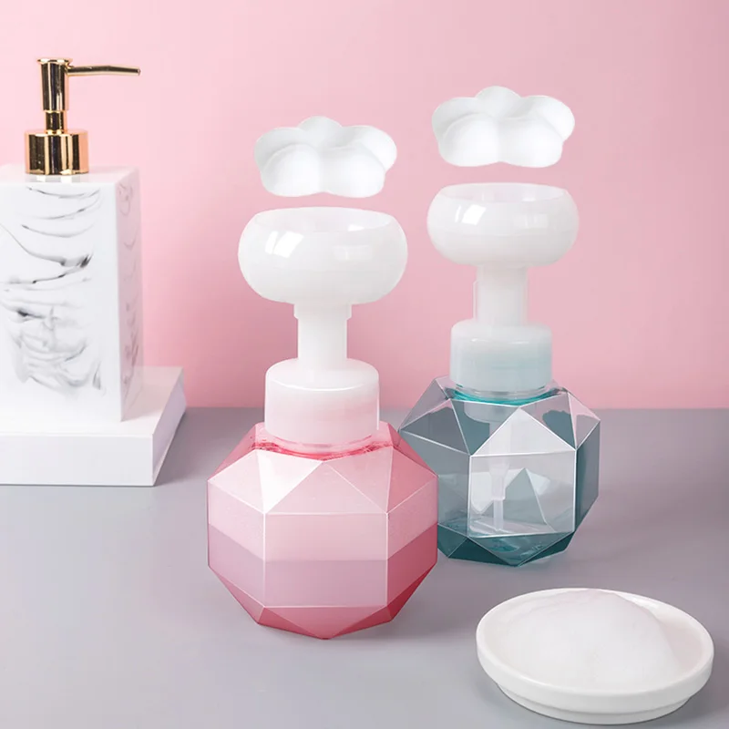 Описание: 300 мл диспенсер мыла в форме цветка пены, насос, пустые пластиковые бутылки с прозрачная бутылка для геля для душа, пены, бутылка с насосом