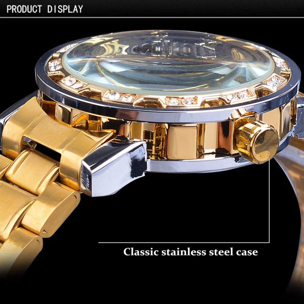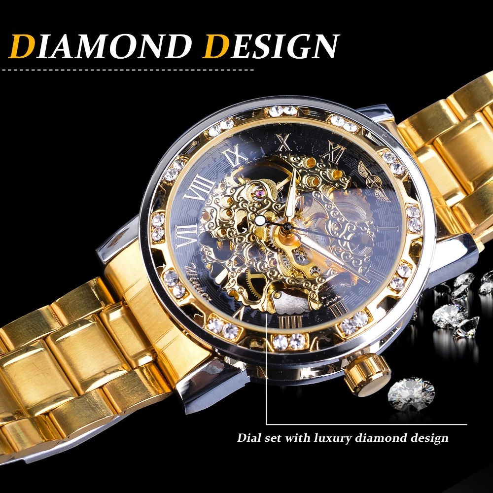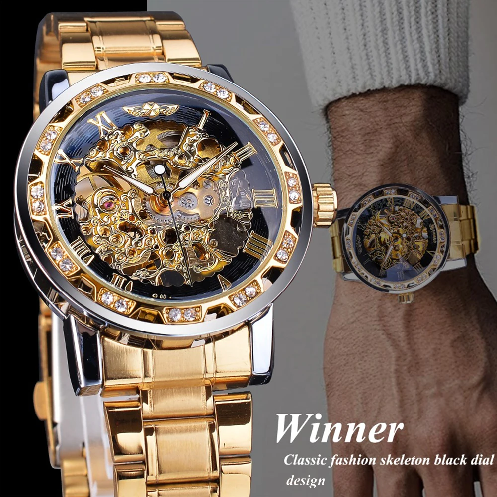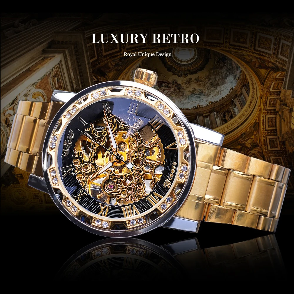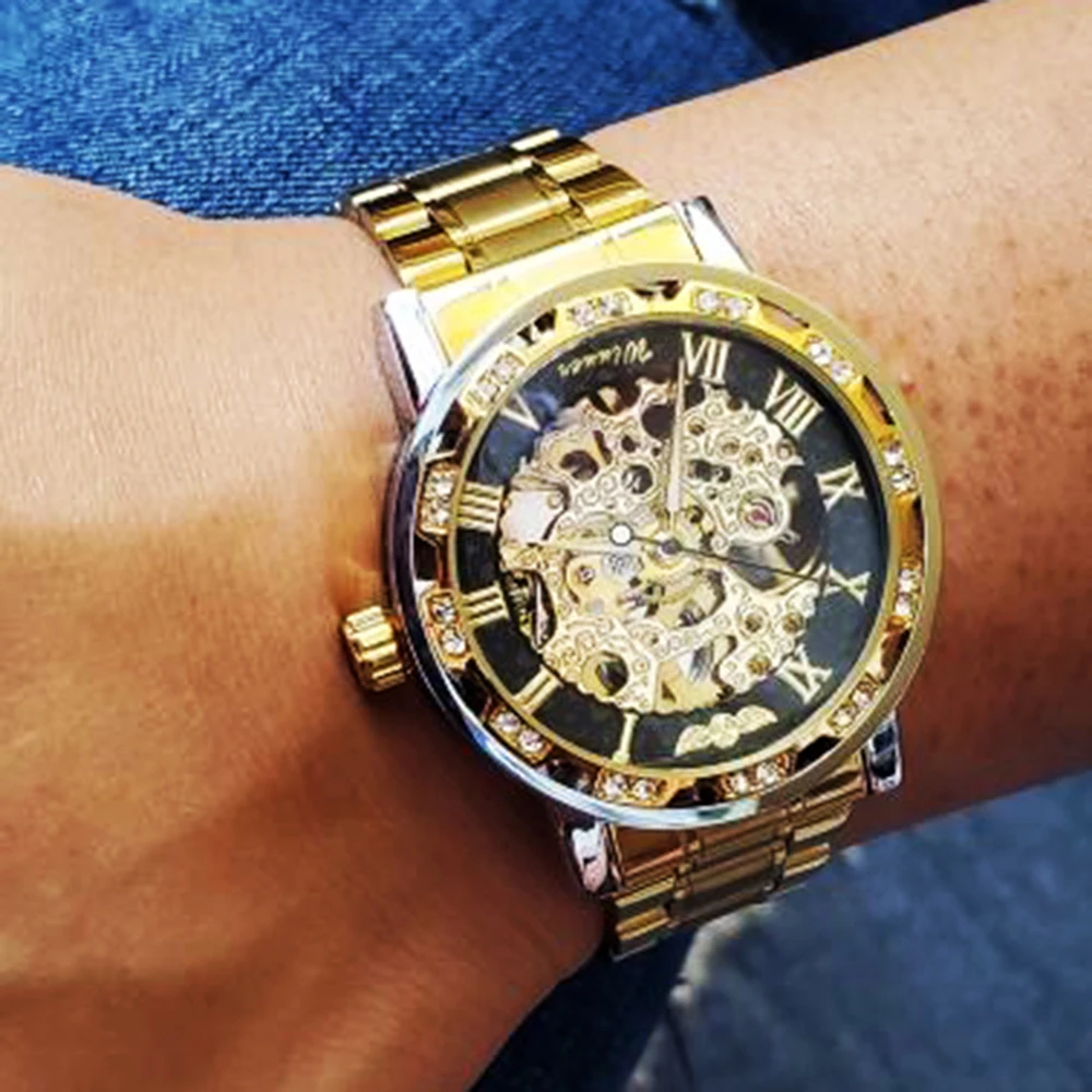 Часы наручные мужские механические со светящимися стрелками и механизмом в стиле ретро