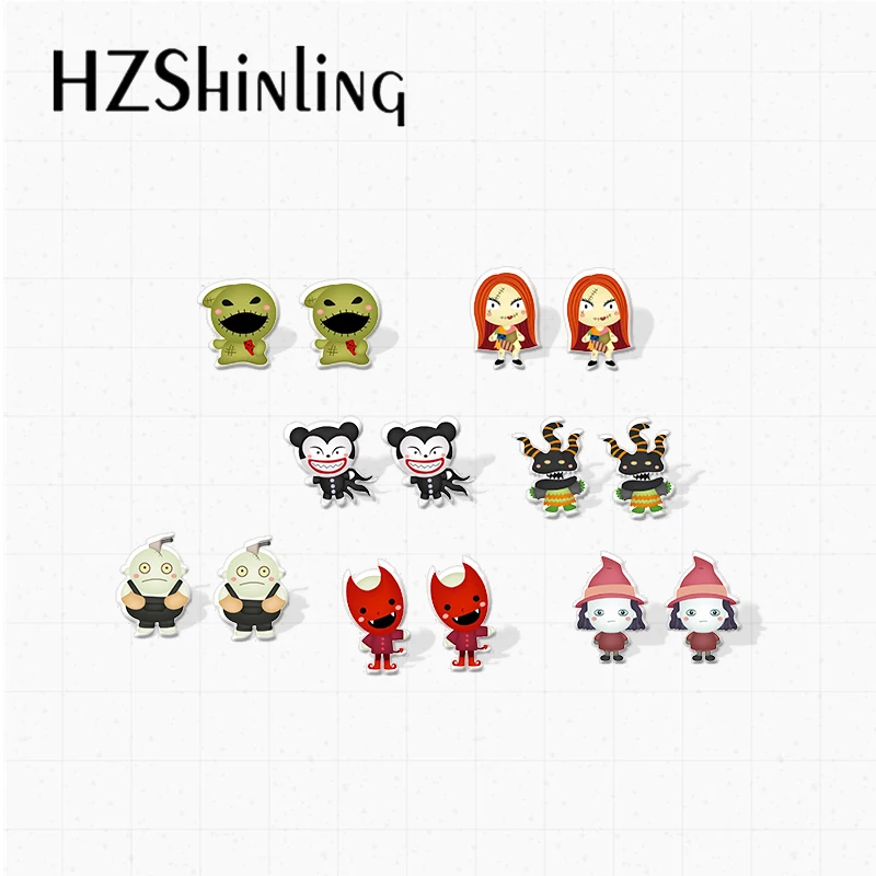 Серьги-гвоздики из эпоксидной смолы, с персонажами фильма Джек Салл...
