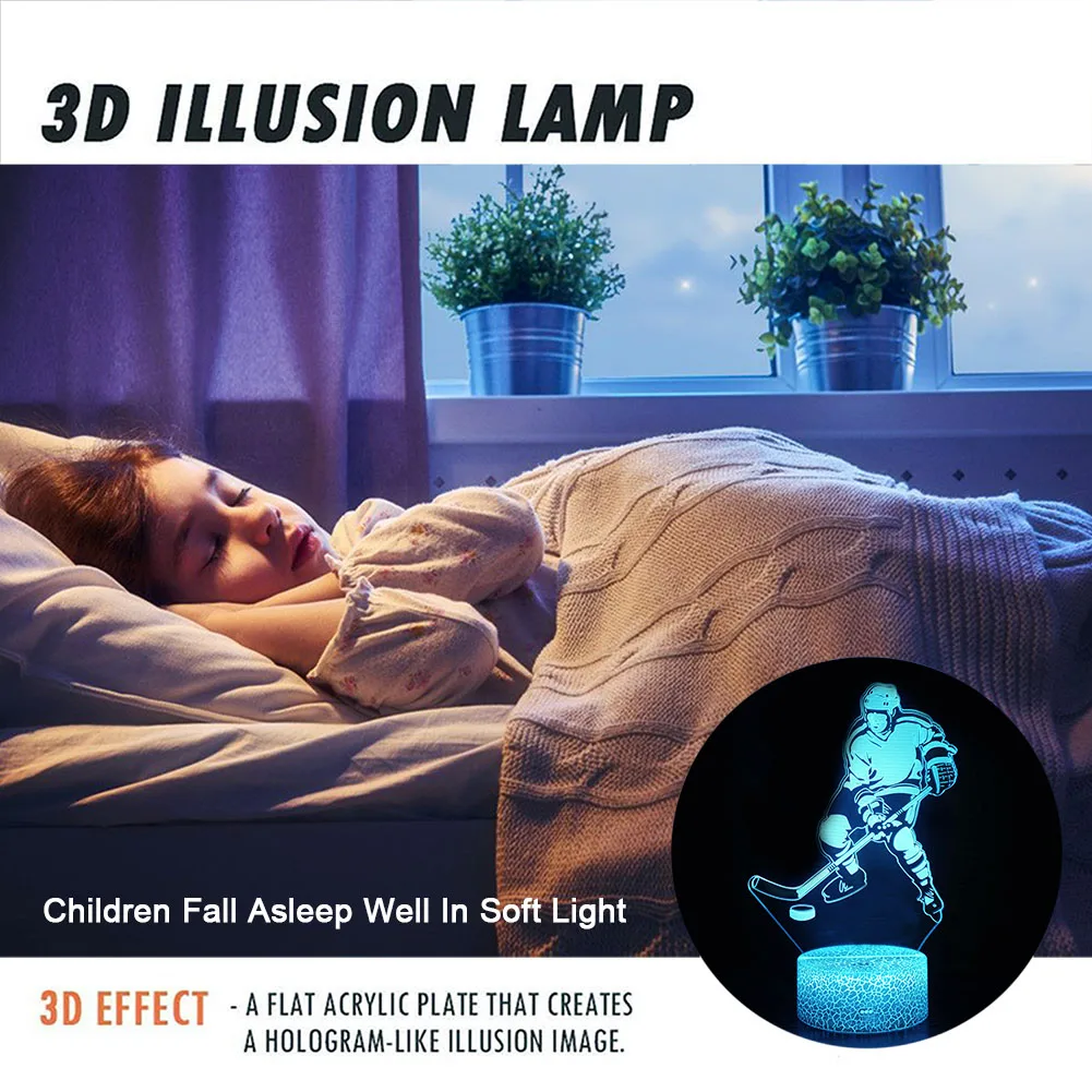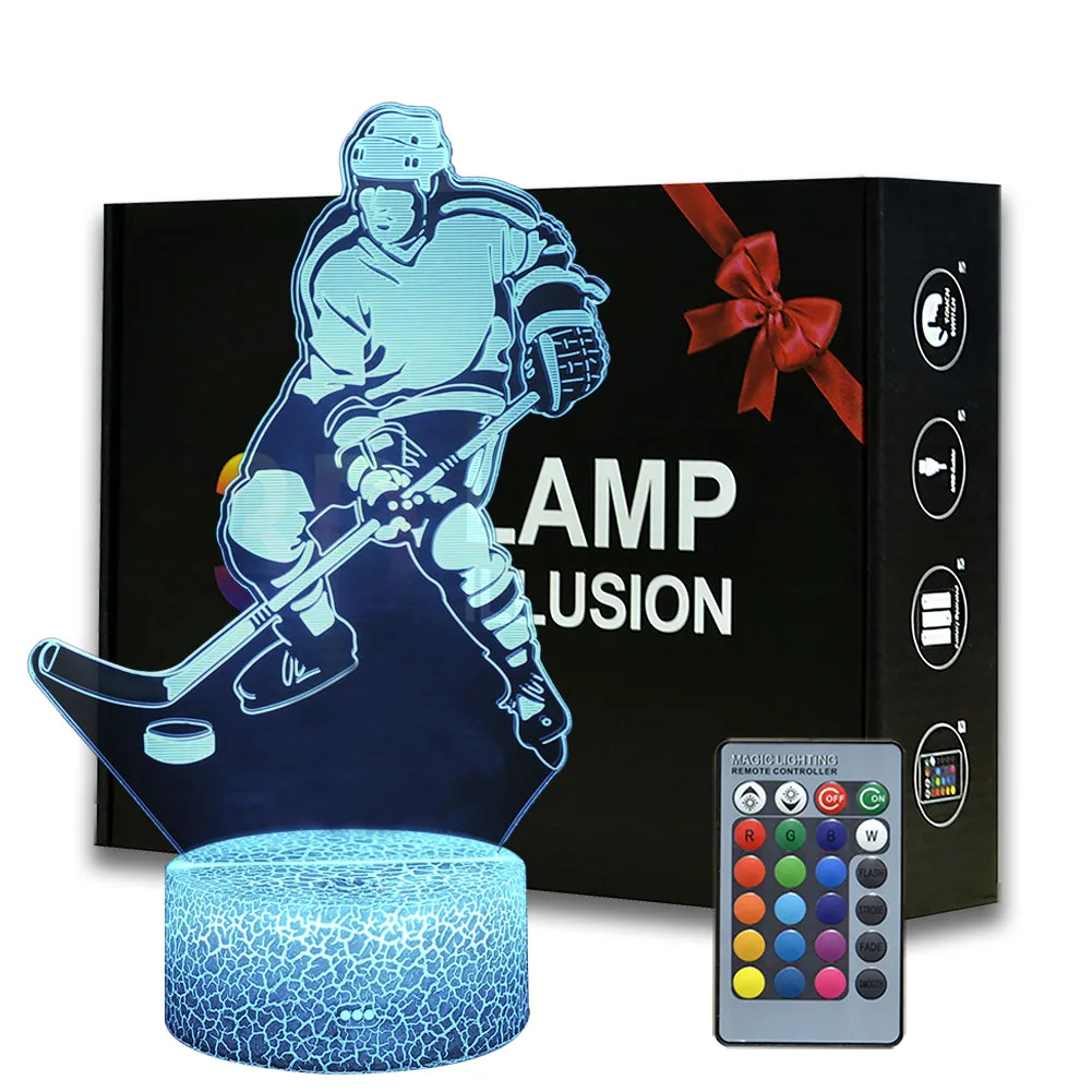 Ночсветильник для хоккея с шайбой, 3d-иллюзия в стиле панк, украшение для спальни, светильник льная лампа, подарок на память о хоккее с шайбой, Прямая поставка