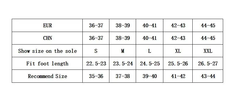 Пожалуйста, выберите правильный размер в соответствии с нашей деталью размеров.Не ориентируйтесь на размер вашей страны. Или легко выбрать неправильный размер.Рекомендации по размеру: если у вас широкая или Толстая стопа, мы советуем выбрать на один размер больше, чем на самом деле.Если вы все еще не можете выбрать размер, вы можете связаться с нашей службой поддержки клиентов, прежде чем размещать заказ.
