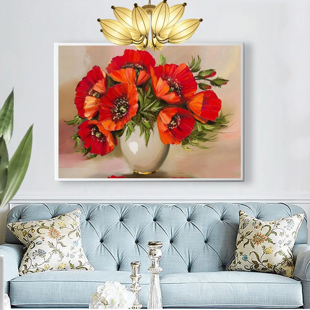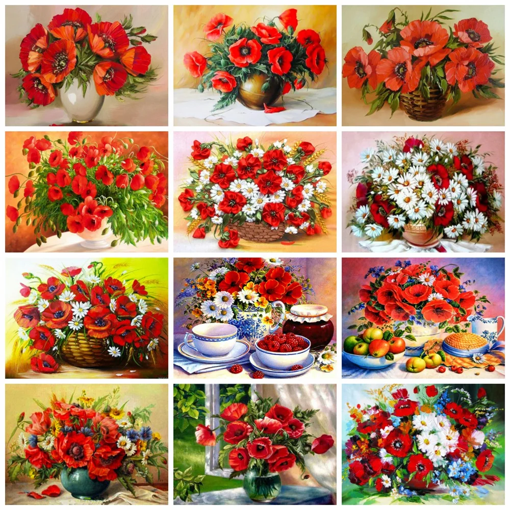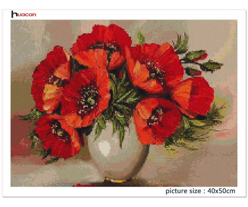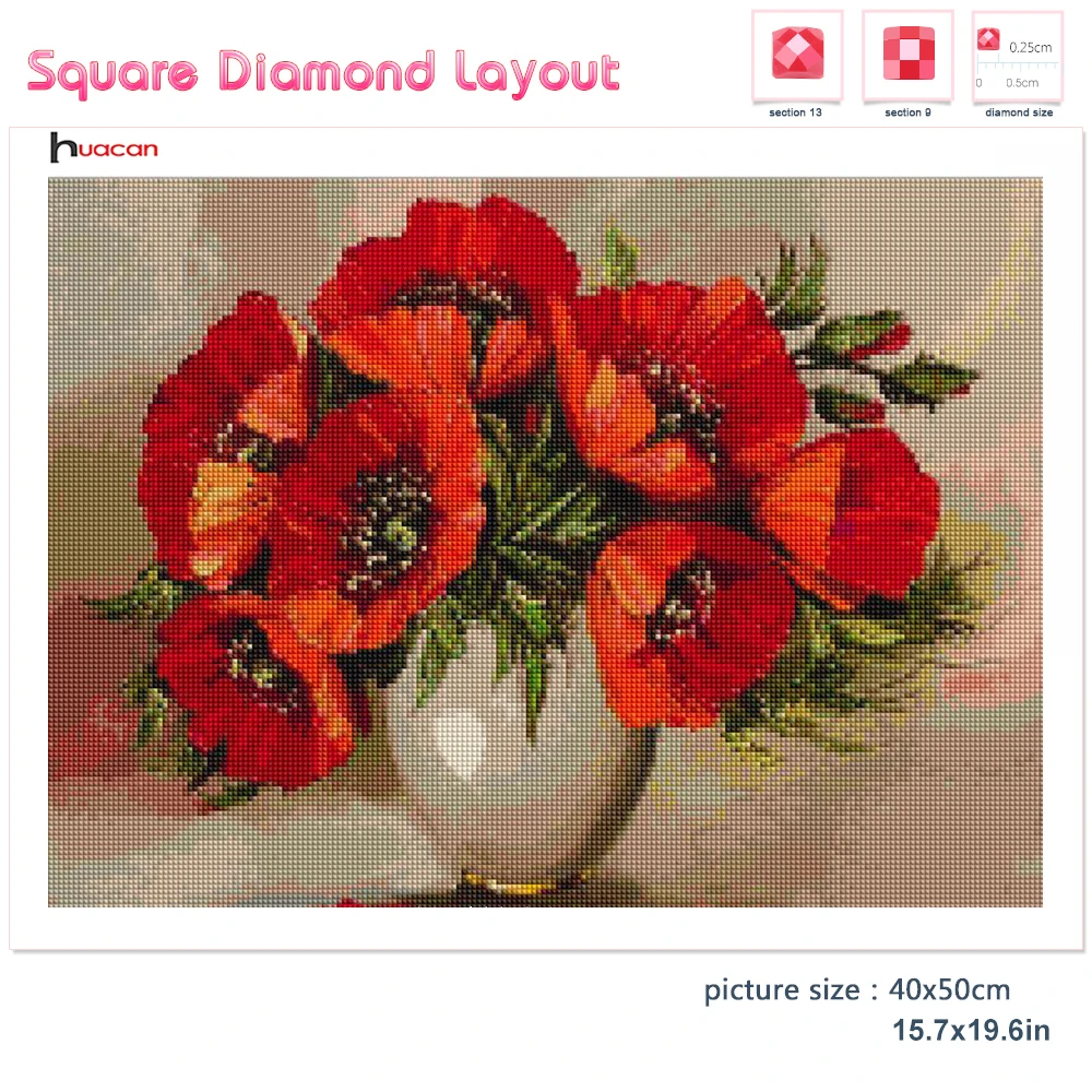 Алмазная живопись Huacan, мозаика из красных цветов, вышивка маком, цветочная ваза, Набор для вышивки крестиком, домашний декор