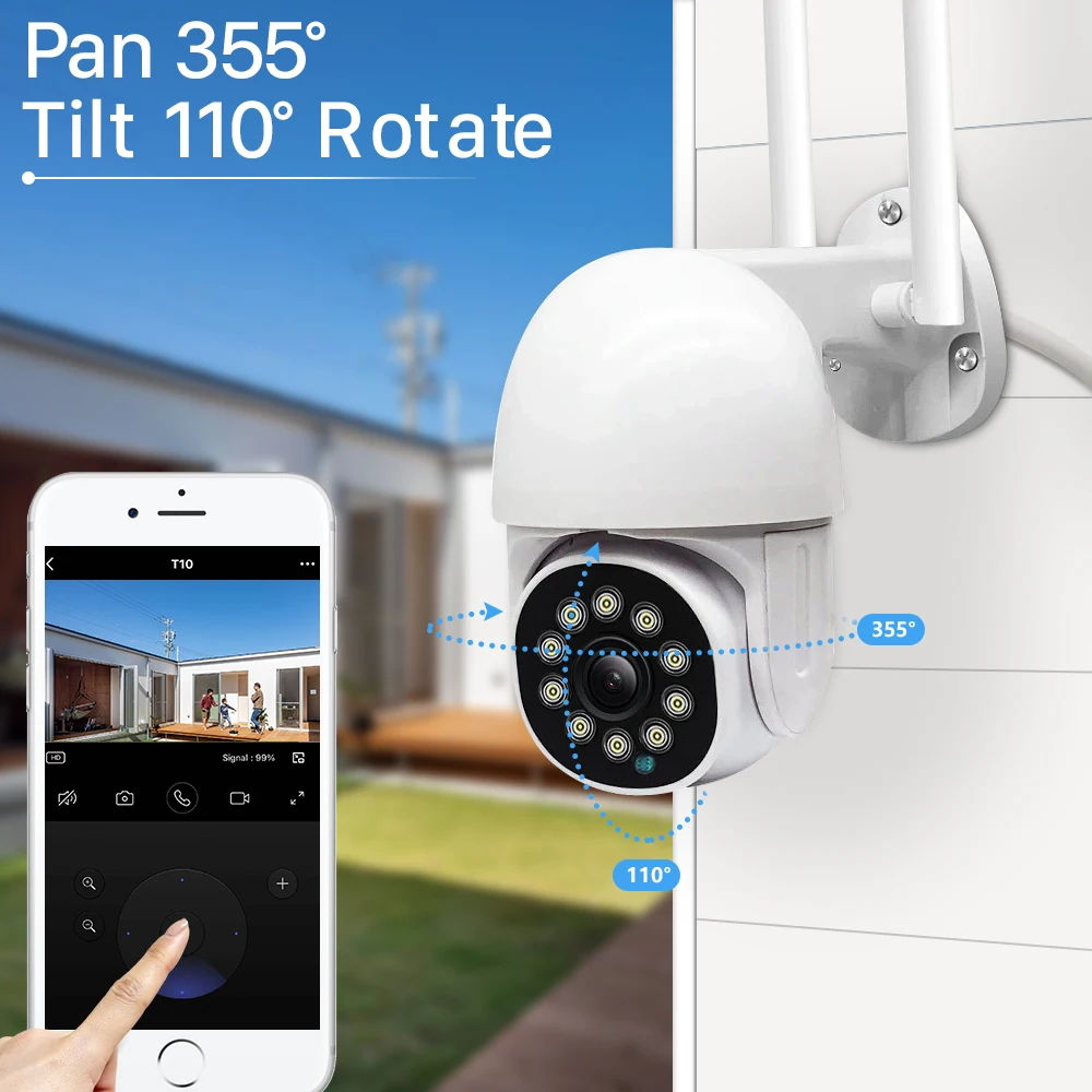 Горизонтальное вращение на 355 °/вертикальное вращение на 100 ° может контролировать угол поворота через приложение Tuya.